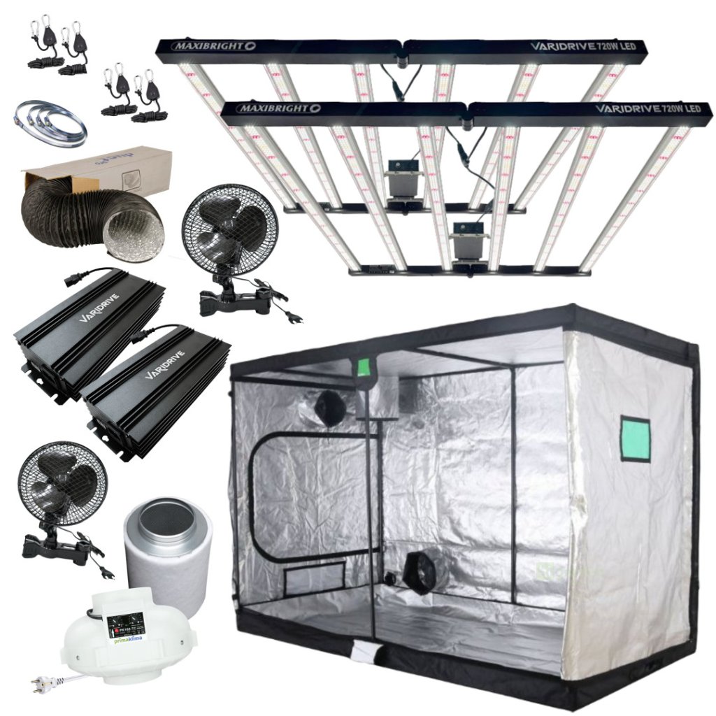 Preisgünstiges Anzuchtset mit 2 x LED 720W-Technologie Maxibright – ein hocheffizientes Vollspektrum-LED-Panel, das für alle Phasen des Pflanzenwachstums und der Blüte geeignet ist. Das Set ist so zusammengestellt, dass es auch bei hoher LED-Wattleistung zum niedrigsten Preis auf dem Markt erhältlich ist.