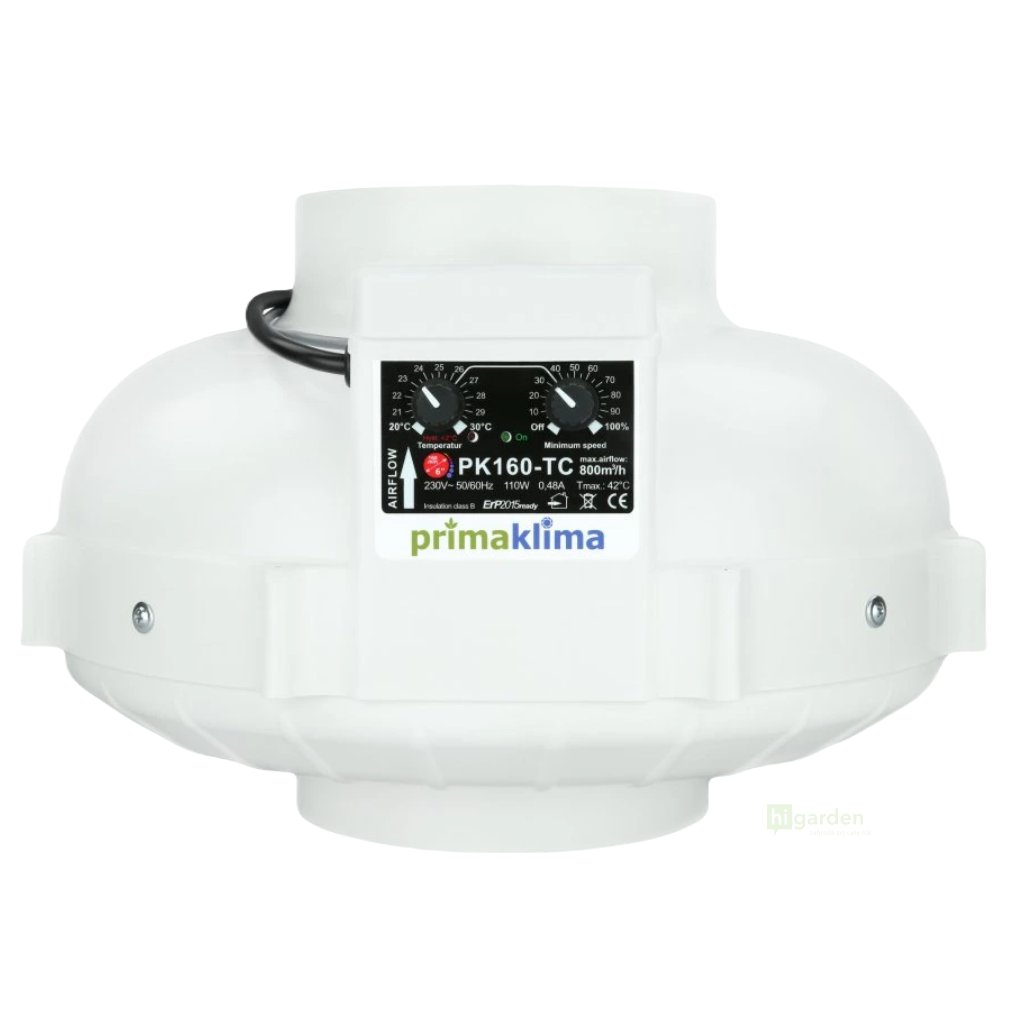 - Ventilátor PRIMA KLIMA 800m3/h, 160mm, mit Wärmeregulierung (PK160-TC) - zuverlässiger Radialventilator zur Belüftung kleinerer Räume. Es handelt sich um einen Ventilator mit eingebautem Temperaturregler und einer maximalen Geschwindigkeit von 800 m3/Std. Dieser Radialventilator ist sehr leise und qualitativ hochwertig. Auch der geringe Verbrauch ist ein Vorteil. Der Durchmesser des Anschlusses beträgt 160 mm mit der Möglichkeit der Reduzierung auf 150 mm. Der Ventilator ist deutscher Herstellung und der Motor ist schweizerischen Ursprungs.