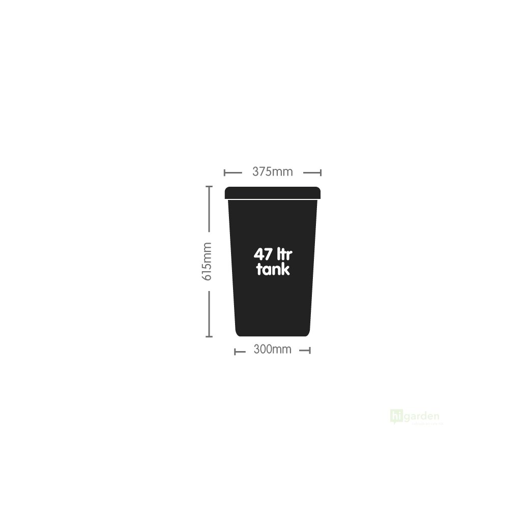 Stellen Sie den Tank mindestens 150 mm über dem höchsten AQUAValve-Ventil auf. Wenn der Wasserstand im Tank auf 1/3 des ursprünglichen Inhalts sinkt, füllen Sie ihn nach.
