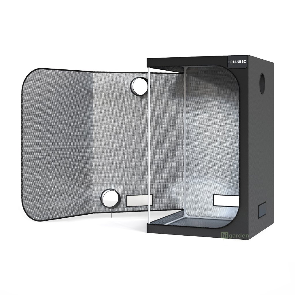 - URBANBOX 120, 120x120x200cm - mittelgroßes Zelt mit Mylar 600D-Gewebe, 16-mm-Metallstangen mit Pulverbeschichtung und Kunststoffecken hat die Maße 120x120x200 cm. Die Tragfähigkeit der Konstruktion beträgt ca. 30 kg. Inklusive Öffnungen für Verkabelung (Durchmesser 10 cm) und Belüftung (Durchmesser 20 und 25 cm)