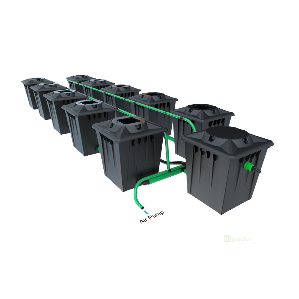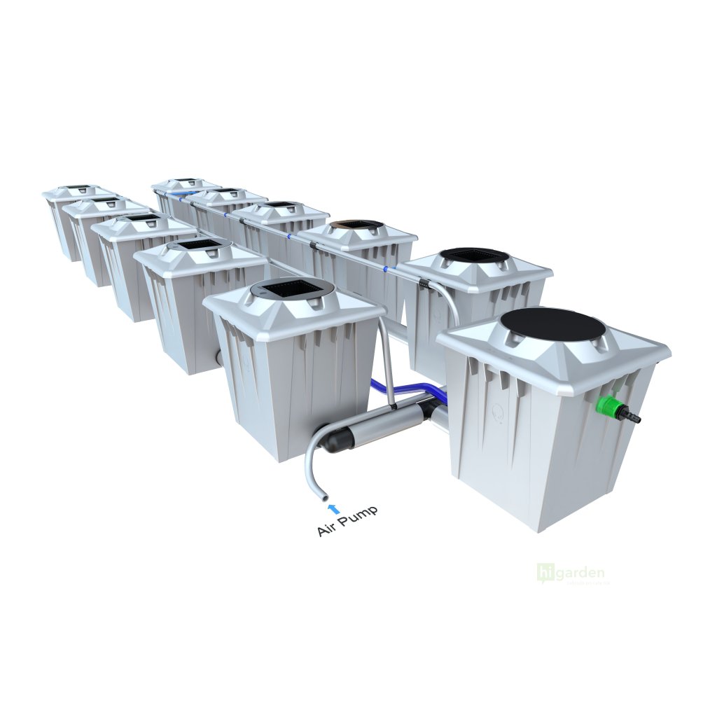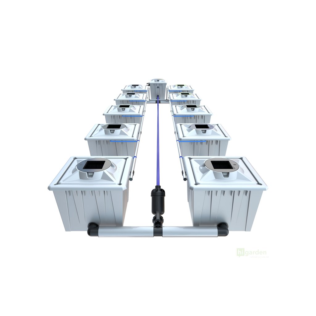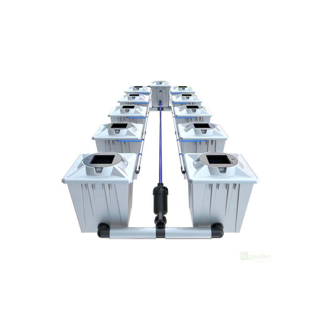 der Alien Hydroponics RDWC 10Pot mit zehn Töpfen ist in Silber und Schwarz erhältlich. Es gibt zwei Topfgrößen zur Auswahl, beide verfügbar in 20L und 36L.