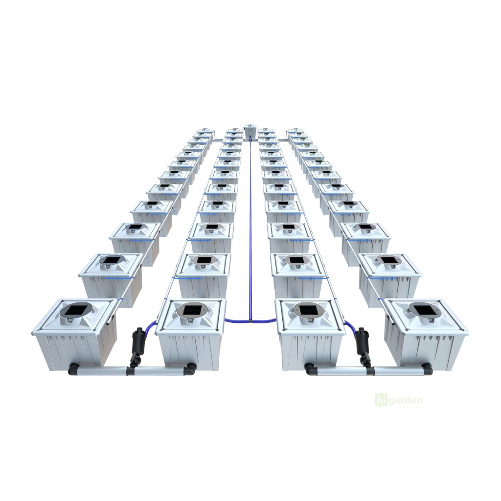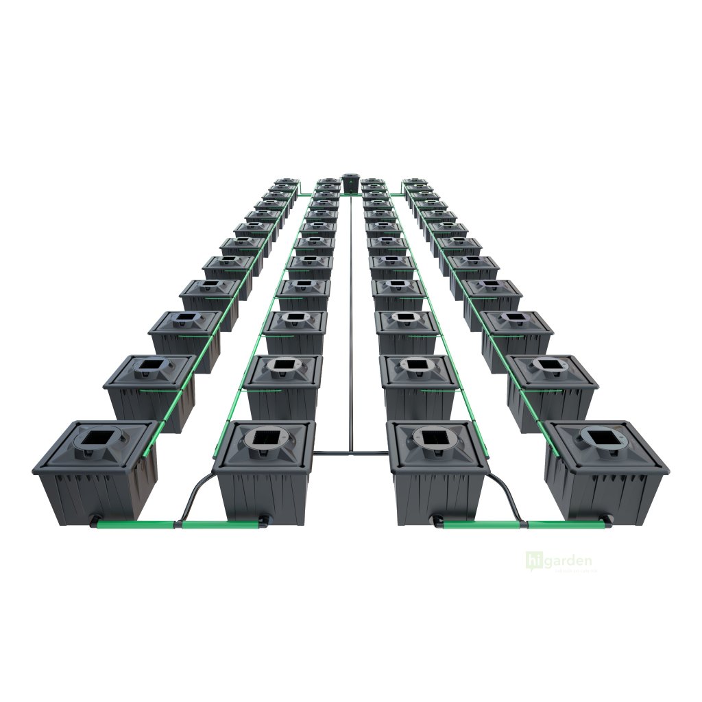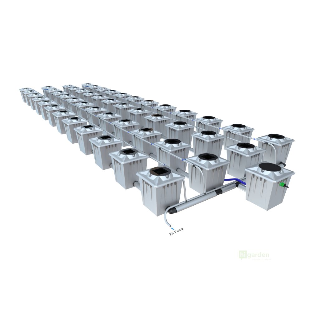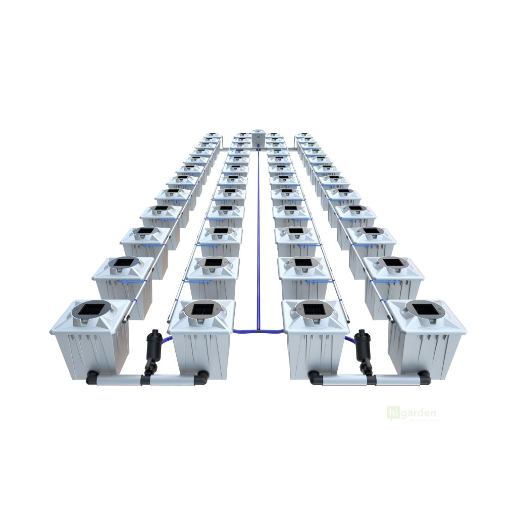 der Alien Hydroponics RDWC 48Pot mit achtundvierzig Töpfen ist in Silber und Schwarz erhältlich. Es gibt zwei Topfgrößen zur Auswahl, beide verfügbar in 20L und 36L.