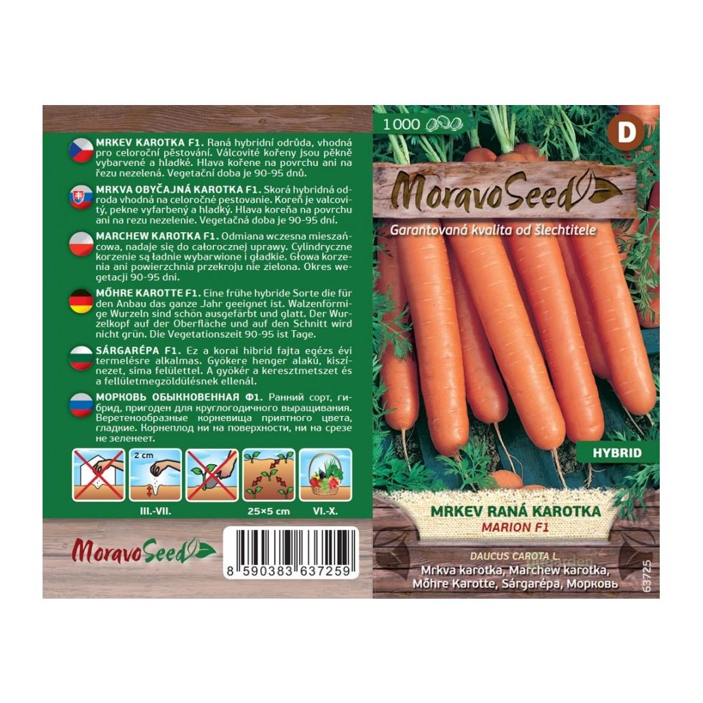 Eine Packung Marion F1 Karottensamen von Moravo Seed enthält 750 Samen.