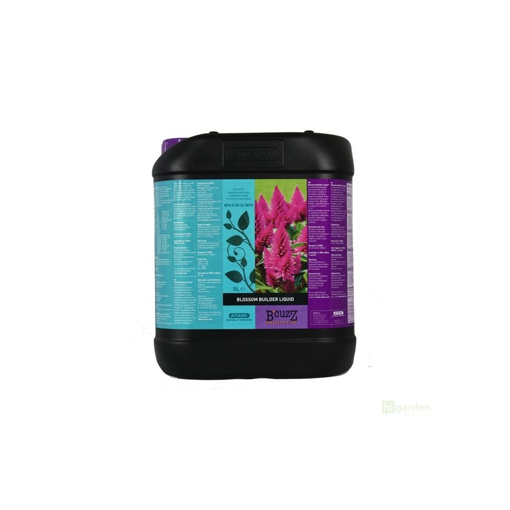 Atami B'cuzz Blossom Builder Liquid wird für die Endbehandlung von Pflanzen verwendet. Sie garantiert eine viel bessere Qualität der Blüten und später der Früchte. Dieses Nahrungsergänzungsmittel hat ein sehr gutes Verhältnis von Phosphor- und Kaliumbestandteilen. Sie eignet sich für den Anbau in Erde, Hydrokultur und Kokosnuss und ist auch für Bewässerungssysteme konzipiert.