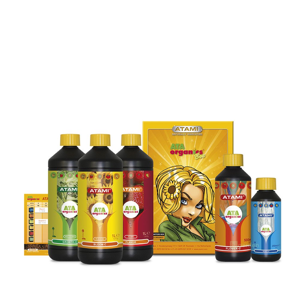ATAMI - ATA NRG Organics Box ist ein Satz von Düngemitteln und Zubehör für den ökologischen Anbau für 1m2 Anbaufläche. Es enthält alles, was Sie brauchen, und ermöglicht Ihnen, den Anbau mit organischen Düngemitteln auszuprobieren. Der Anbau in Substrat (Erde) ist eine Voraussetzung, da organische dünger nicht für den hydroponischen oder aeroponischen Anbau geeignet sind. Hierfür empfehlen wir die Mineralserie Atami ATA.
