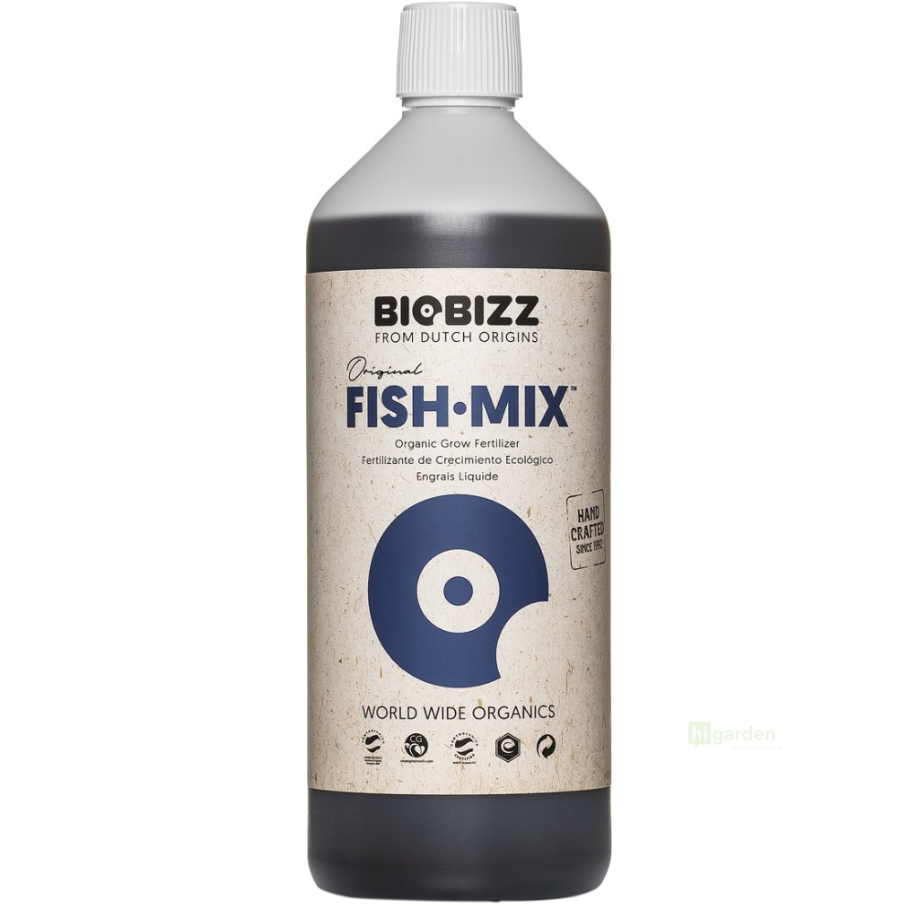 BioBizz Fish Mix ist eine ausgezeichnete pflanzliche Flüssigkeit dünger aus den Niederlanden, die Fischemulsionsbestandteile aus der Nordsee enthält, die mit holländischem Zuckerrübenextrakt gemischt sind, der dazu beiträgt, das Wachstum aller lebenden Organismen im Substrat zu beschleunigen. Außerdem stimuliert es die Produktion von Mikroorganismen und nützlichen Bakterien in allen Arten von Böden und Kokossubstraten. Fish Mix ist für alle Freilandpflanzen in der ersten Wachstumsphase und während der Blütezeit bis zur Ernte geeignet. Selbst nach einigen Tagen der Anwendung verbessert sich die Bodenqualität zu einem Boden voller natürlicher Mineralien, die Ihre Pflanzen benötigen.