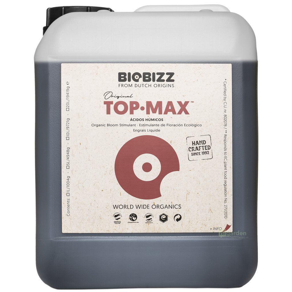 • Tipp für beste Ergebnisse: Um einen synergistischen Effekt und absolut beste Ergebnisse zu erzielen, empfehlen wir, Topmax mit den Düngemitteln Bio-Bloom und dem Zusatzstoff Bio-Heaven zu kombinieren. Vollständige Dosierungsschemata finden Sie in den Dosierungstabellen von Biobizz.