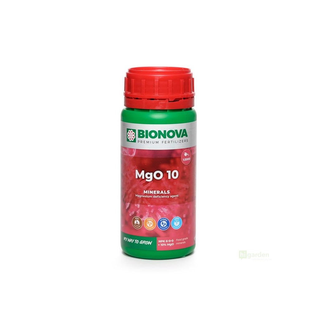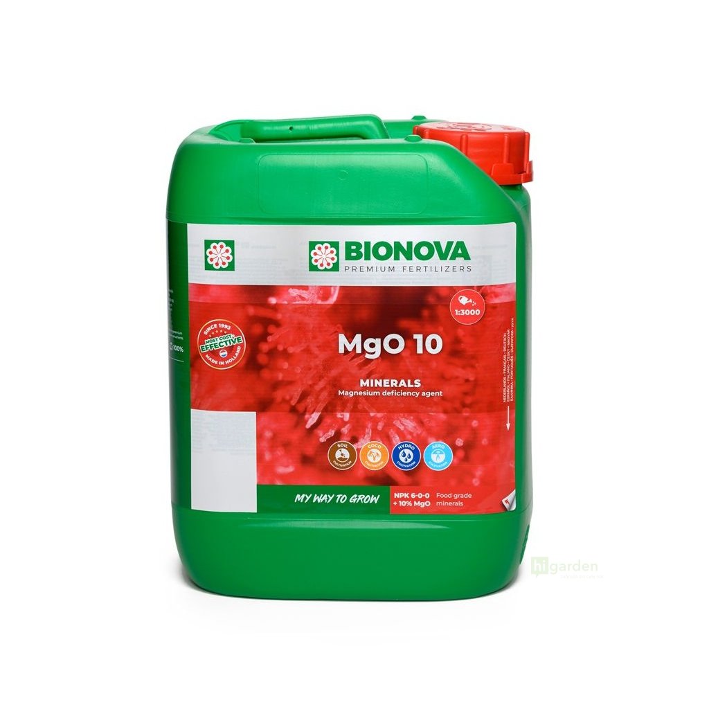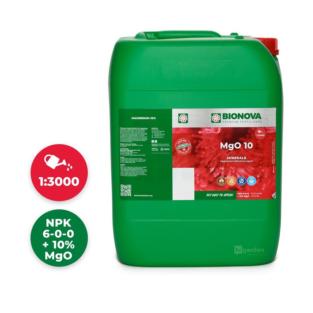 BioNova MgO 10 ist ein Produkt, das Folgendes enthält 10 % MgO. Es ist eines der Elemente, die für die Flüssigkeit dünger Bio Nova unverzichtbar sind. Magnesium unterstützt den Chlorophyllprozess, der Lichtenergie in chemische Energie umwandelt (ATP und ADP). Magnesiummangel führt zu Chlorose (Farbverlust) und frühem Blattfall. Umgekehrt führt ein Magnesiumüberschuss zu ungesunden pflanzenwachstum und kleine Blätter. BN MgO 10% wirkt sehr schnell, ist wirtschaftlich und enthält keine überflüssigen Inhaltsstoffe.