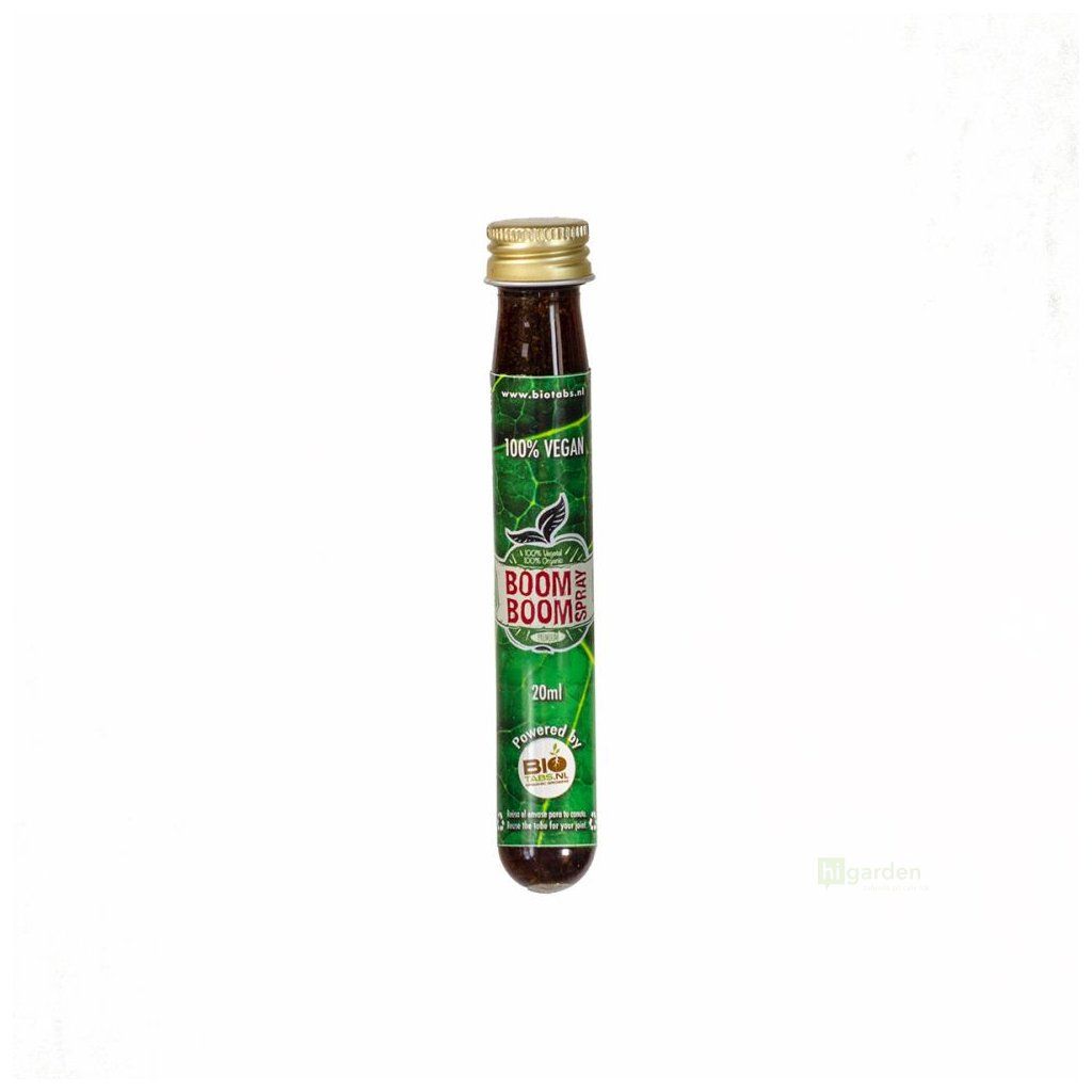 Biotabs Boom Boom Spray enthält nur natürlichen Stickstoff, Aminosäuren, Mineralien, Kohlenhydrate und Peptide und liefert alle Nährstoffe, die für die Entwicklung starker und gesunder Pflanzen mit köstlichen Früchten und Blumen benötigt werden. Es ist völlig unschädlich für Pflanzen, Tiere und Menschen. Dieses organische Biostimulans ist für den Innen- und Außenanbau bestimmt und kann in Erde, Kokosnuss und Hydra verwendet werden.