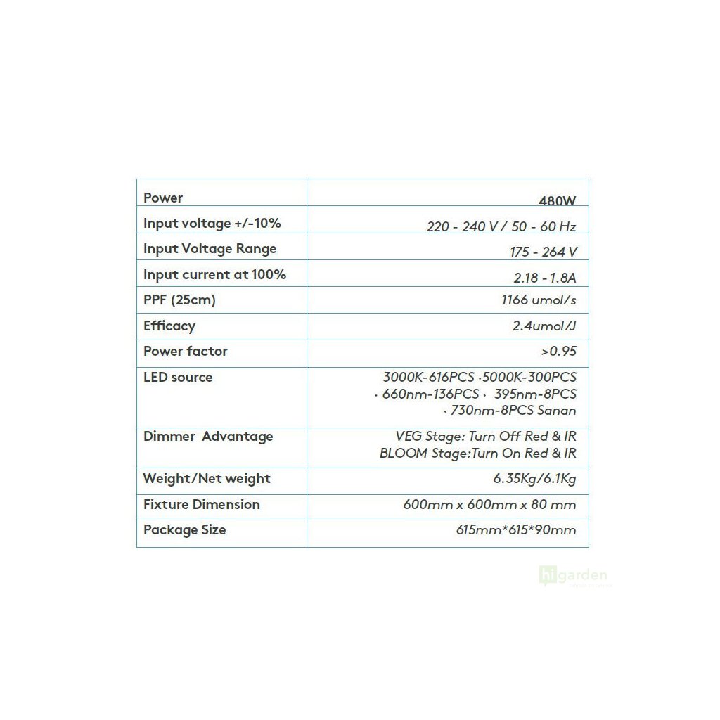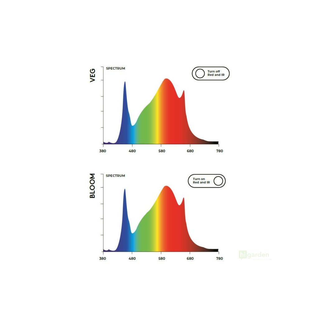 - vollspektrum: Weiß, Blau, Rot, Infrarot (IR) und Rot (FR) mit 3000K, 5000K, 395nm, 660nm und 730nm