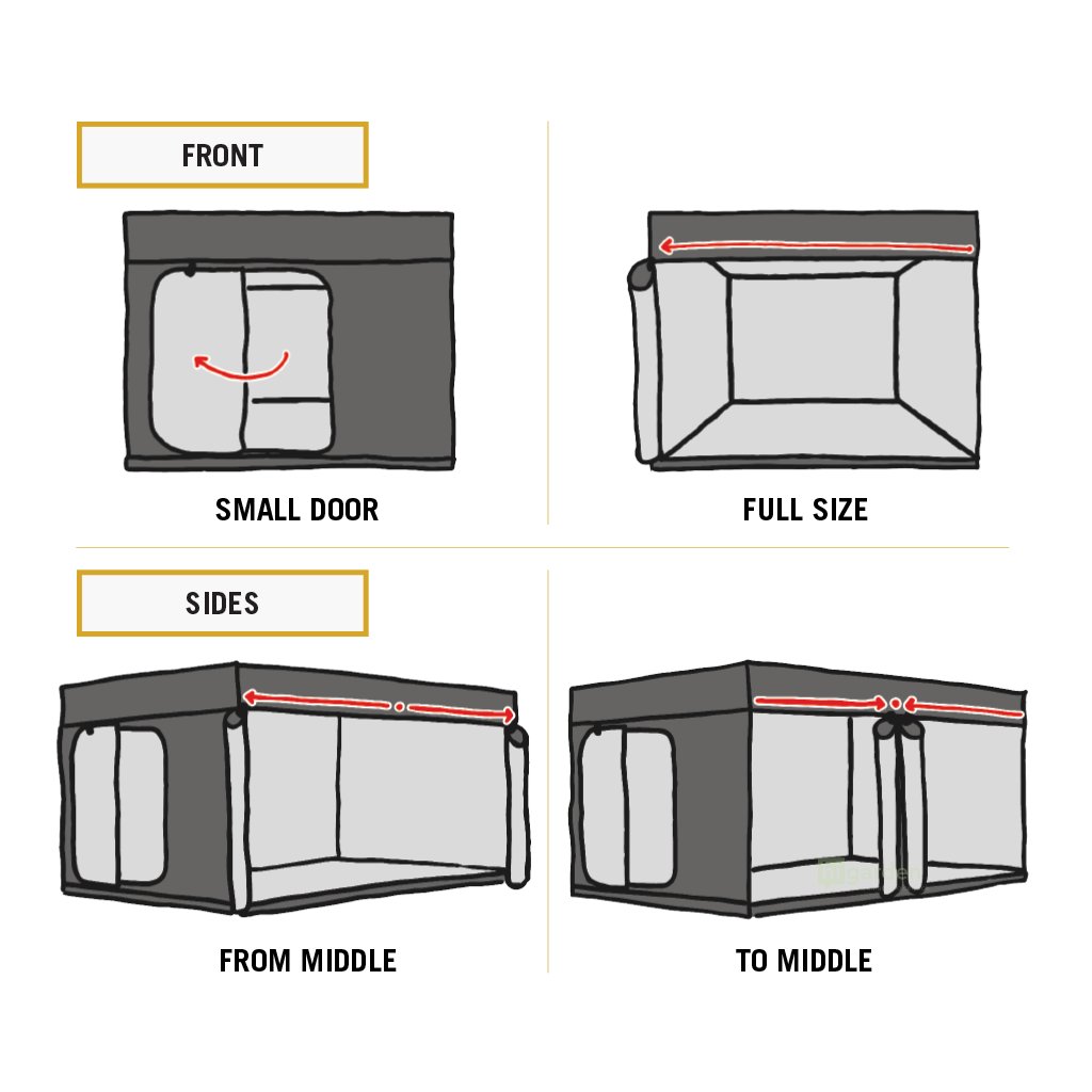 Möchten Sie das Zelt in irgendeiner Weise verändern (z.B. Löcher für die Verkabelung anbringen), dann schauen Sie sich das Zubehör für Secret Jardin Zelte an!