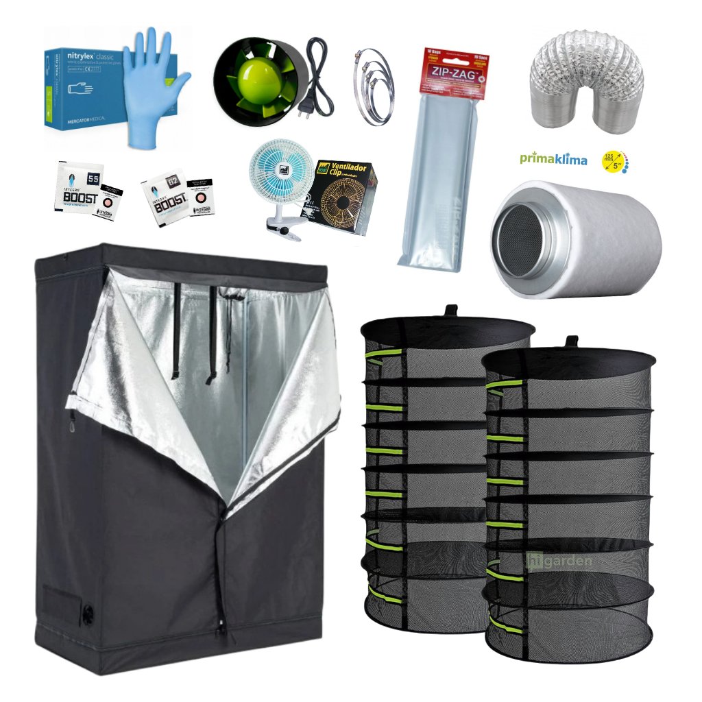 - Growzelt 120 x 60 x 150 cm – mittelgroßes Growzelt mit 600D Mylar-Gewebe, 16 mm pulverbeschichteten Metallstangen und Kunststoffecken, die eine optimale Umgebung für das Trocknen von Kräutern bietet und genügend Platz für die Unterbringung des Trocknungsnetzes und anderer Ausrüstungsgegenstände bietet, Belüftungslöcher sorgen für eine effiziente Luftzirkulation