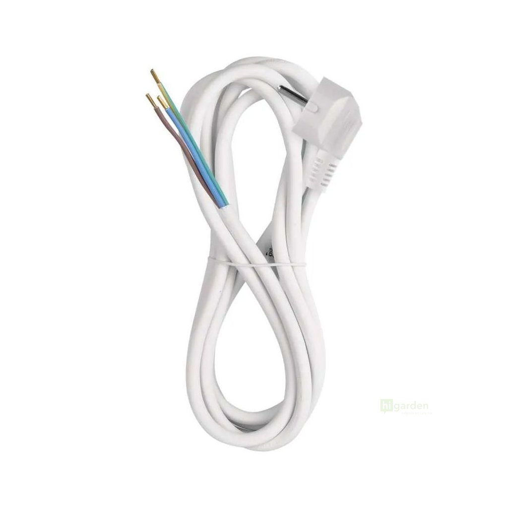 Ein Ende ist mit einem EU-Stecker für die Steckdose versehen, das andere mit einem losen Ende.