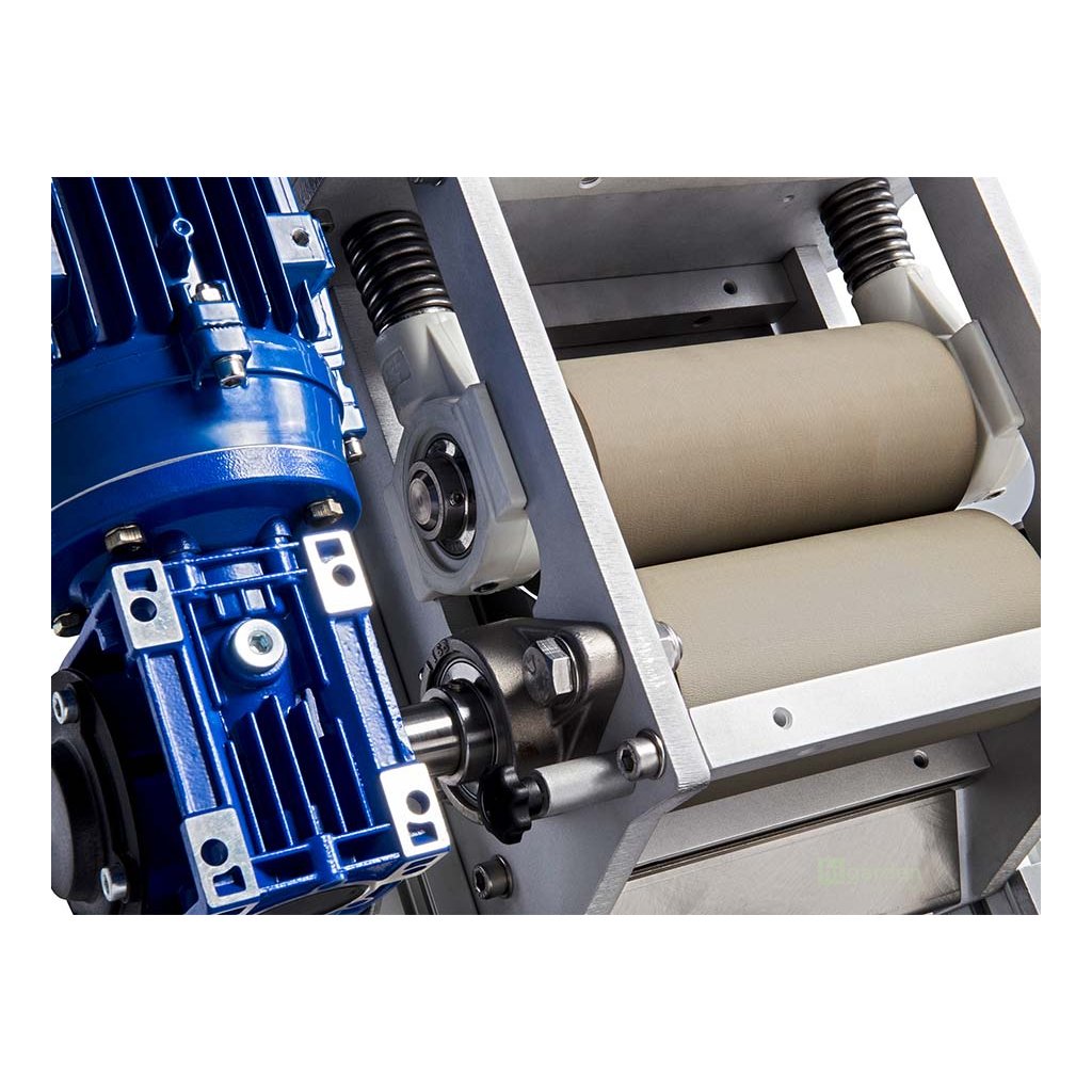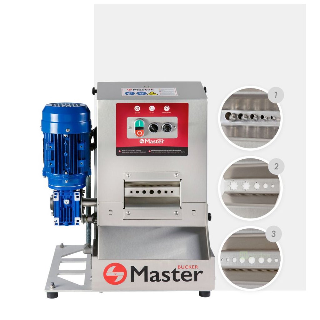 Dank seines kompakten Designs und der verstellbaren Antivibrationsfüße lässt er sich leicht installieren und ohne Werkzeug an jede Werkbank anpassen. Der Bucker hat die Maße 43x48x60cm und ermöglicht die Verarbeitung großer Mengen auf kleinem Raum.