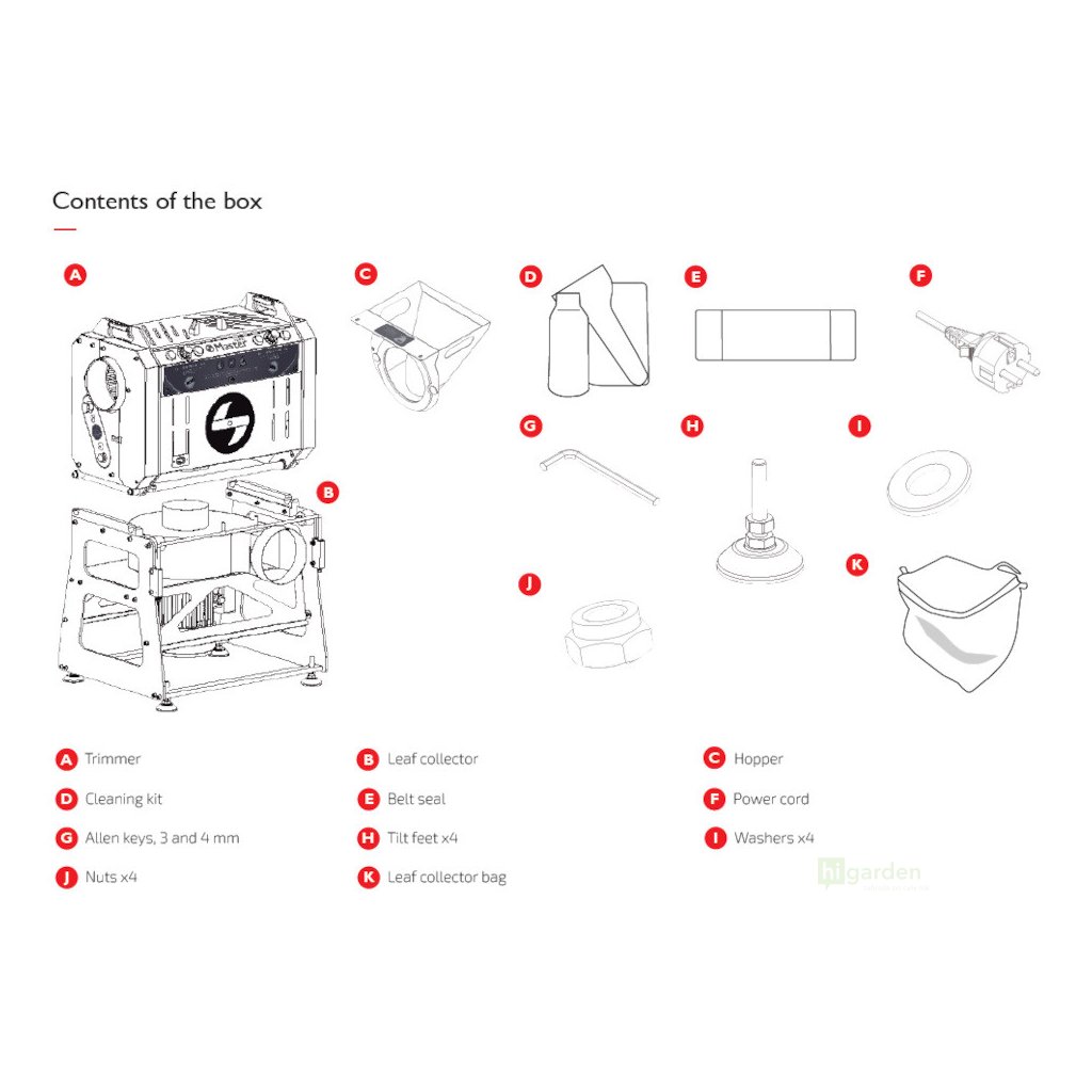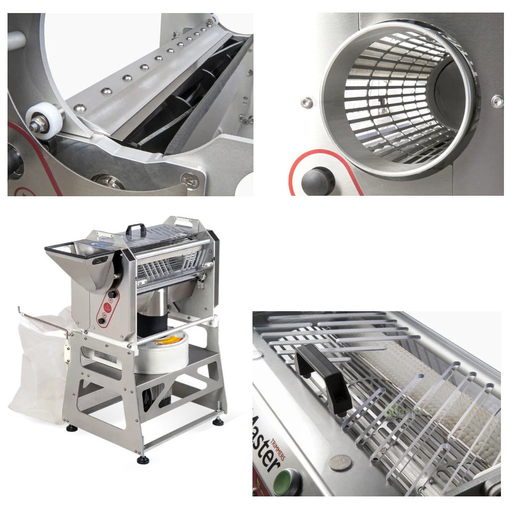 Technische Daten:- Spannung: 230 V 50/60 Hz - Leistung des Trommelmotors: 15 W - Leistung des Klingenmotors: 200 W - Gewicht des Trimmers: 33 kg - Gewicht der Trommel: 26 kg - Abmessungen der Maschine: 76x70x93 cm - Material der Maschine und der Trommel:
