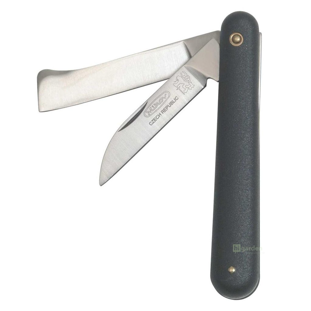 - hat einseitig geschliffene Klingen, Veredelung mit abgerundeter Spitze, Inokulation mit stumpfer Spitze (zum Spalten der Rinde beim Impfen)