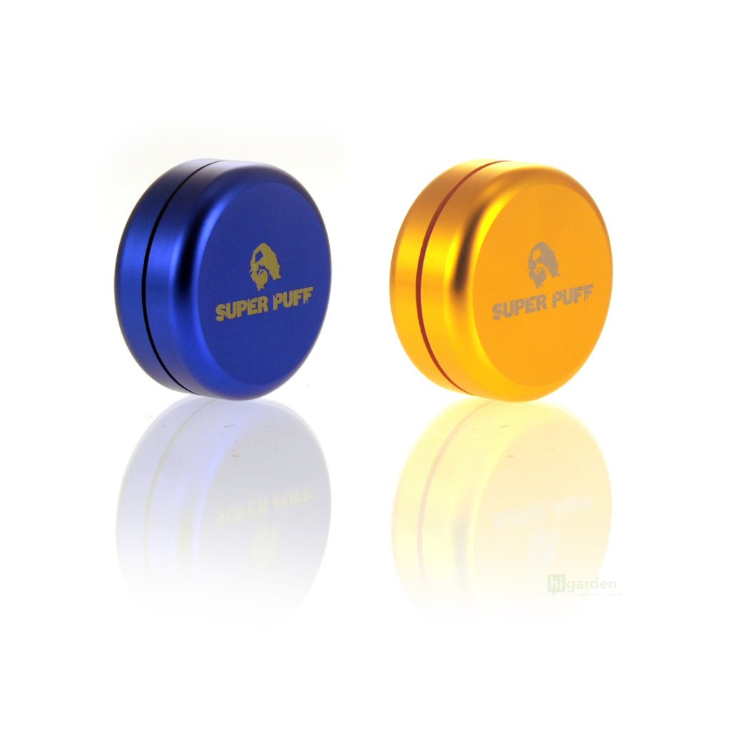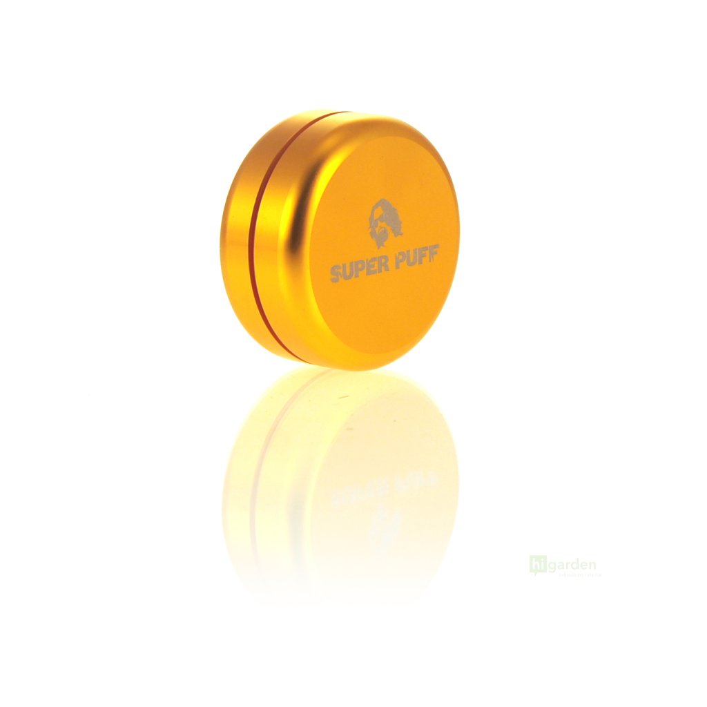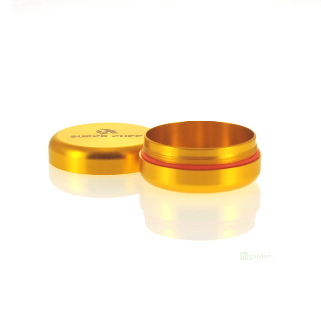 Aluminiumbox mit einem Volumen von 35 ml und einem Durchmesser von 5 cm von Super Puff, einer Schwesterfirma der bekannten niederländischen Samenbank Super Strains Seeds.