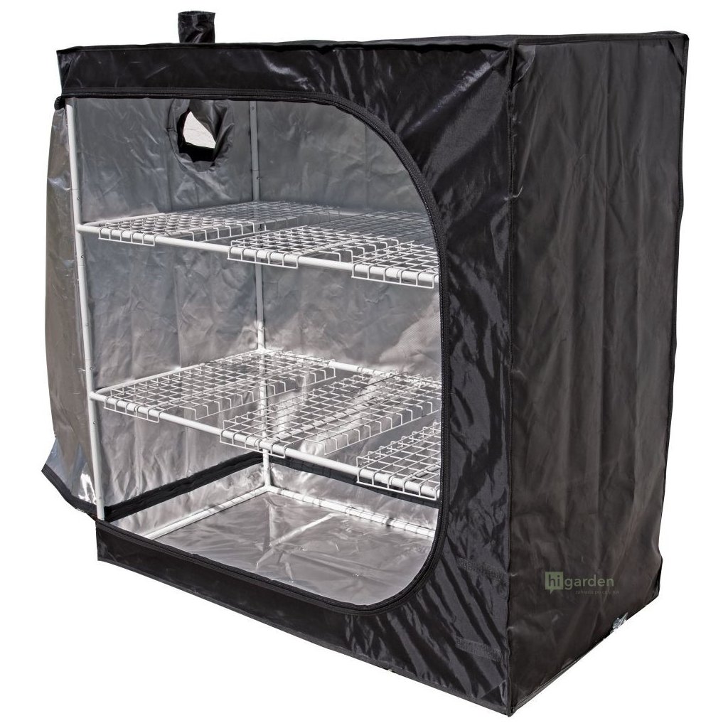 Mit Abmessungen von 120x60x120 cm bietet dieser Propagator drei Anzucht-Ebenen, auf denen Sie Dutzende von Stecklingen oder kleinen Sämlingen gleichzeitig unterbringen können. Die beiden herausnehmbaren Regale aus beschichtetem Netzgewebe können Sie leicht entfernen und den Innenraum so für höhere Pflanzen anpassen. Ebenfalls enthalten ist eine abnehmbare wasserdichte Einlage, die Ihren Boden vor verschüttetem Wasser schützt und die Reinigung und Wartung erheblich erleichtert.