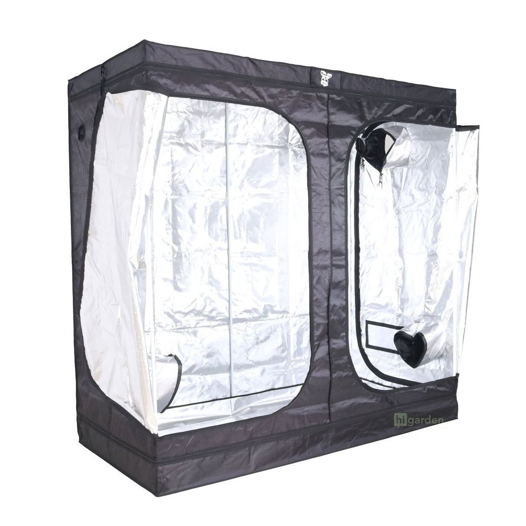 Die Außenhülle besteht aus robustem und absolut lichtundurchlässigem 600D Gewebe. Doppelte Nähte garantieren maximale Festigkeit und verhindern jeglichen Lichtaustritt. Das Innere ist mit einer silbernen Mylarfolie mit 95% Reflektivität ausgekleidet, die das Licht effektiv zu allen Teilen Ihrer Pflanzen streut, egal ob Sie Tomaten, Kräuter oder Chilischoten anbauen.