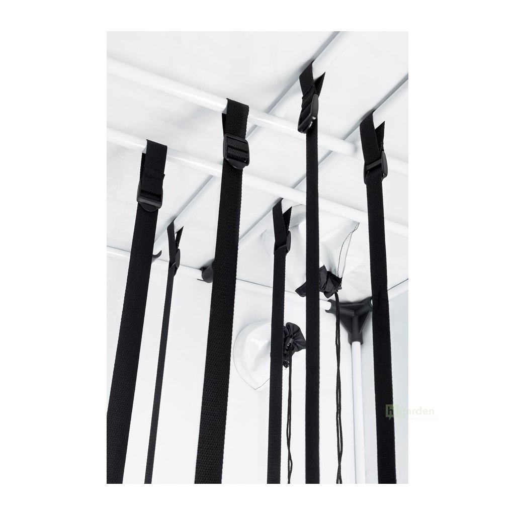 • Langlebiges Gehäuse und 22-mm-Stäbe. Man muss wirklich wollen, dass die Schale reißt, was zusammen mit der robusten Konstruktion, einschließlich verstärkter Kunststoffverbindungen, eine besonders lange Lebensdauer der Growbox gewährleistet.