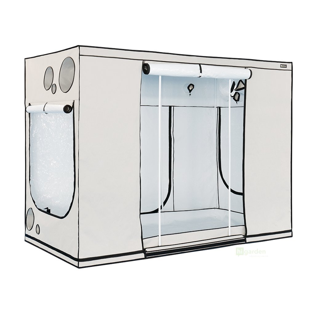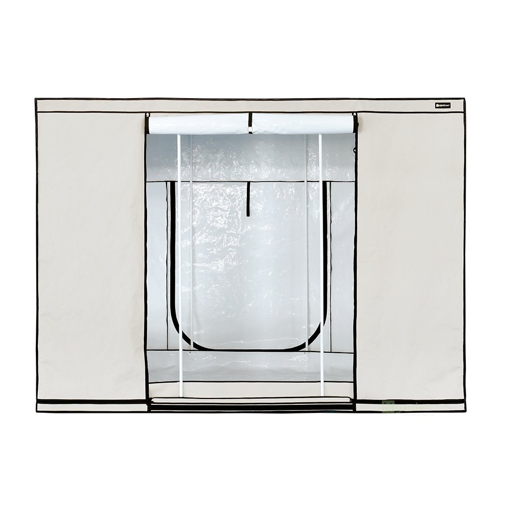 HOMEbox® Ambient R300+ mit beidseitigem Seiteneingang bietet einen luxuriösen Anbauraum für die ganze Familie 9,9 m3. Die hellen Zelte mit weißer Folie eignen sich perfekt für den Heimanbau und sind dank der Spitzenqualität aller Komponenten auch der erste Schritt zu einer Ernte, die eines Profis würdig ist.