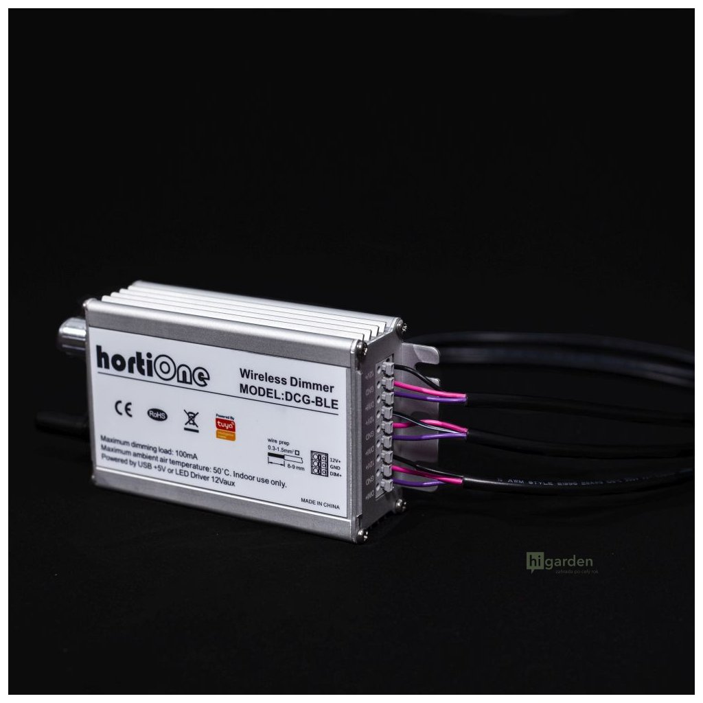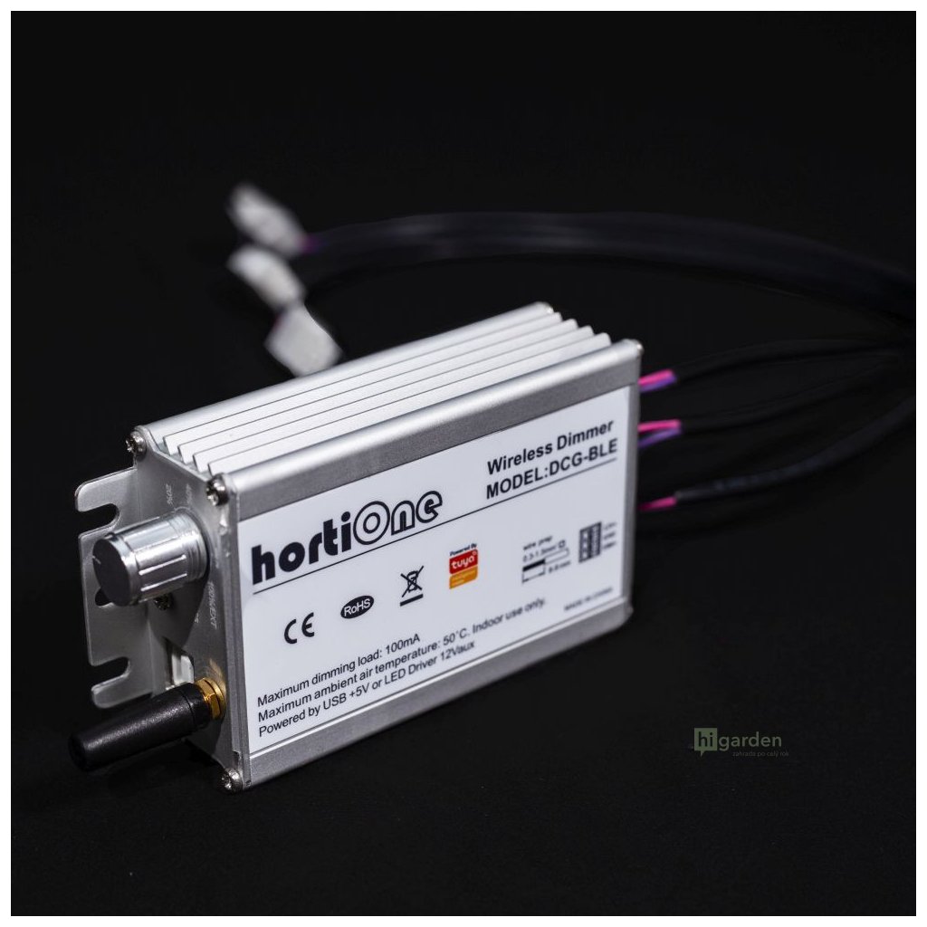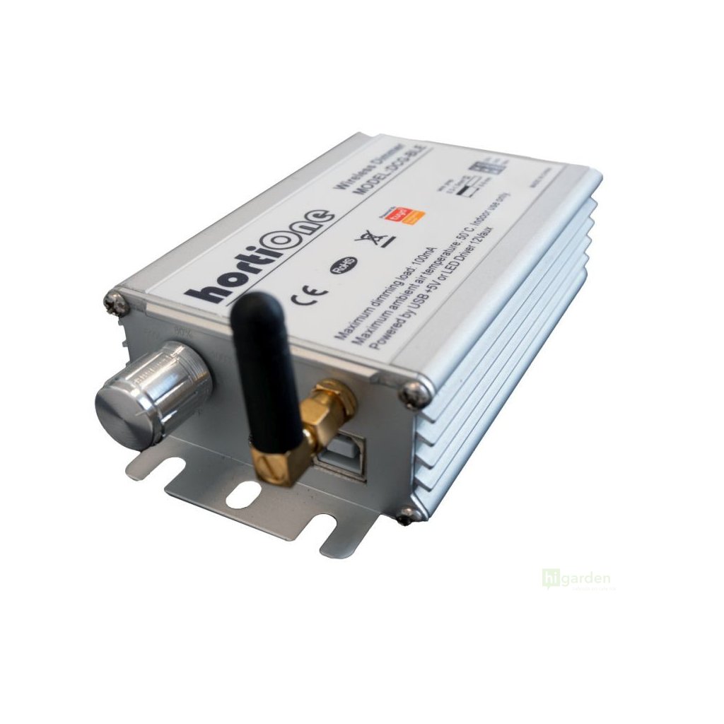 Der hortiONE Knob+Bluetooth 0-10V Dimmer ist für die Steuerung von bis zu drei HortiOne LED-Leuchten mit Plug-and-Play-Konnektivität konzipiert. Der Dimmer ist auch mit allen 0-10V dimmbaren Steuerungen kompatibel.