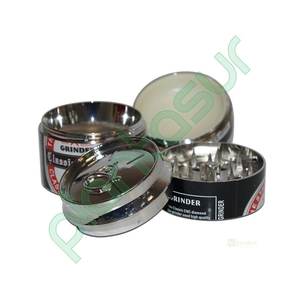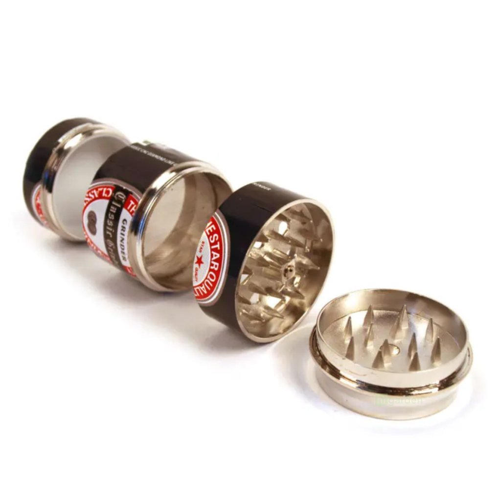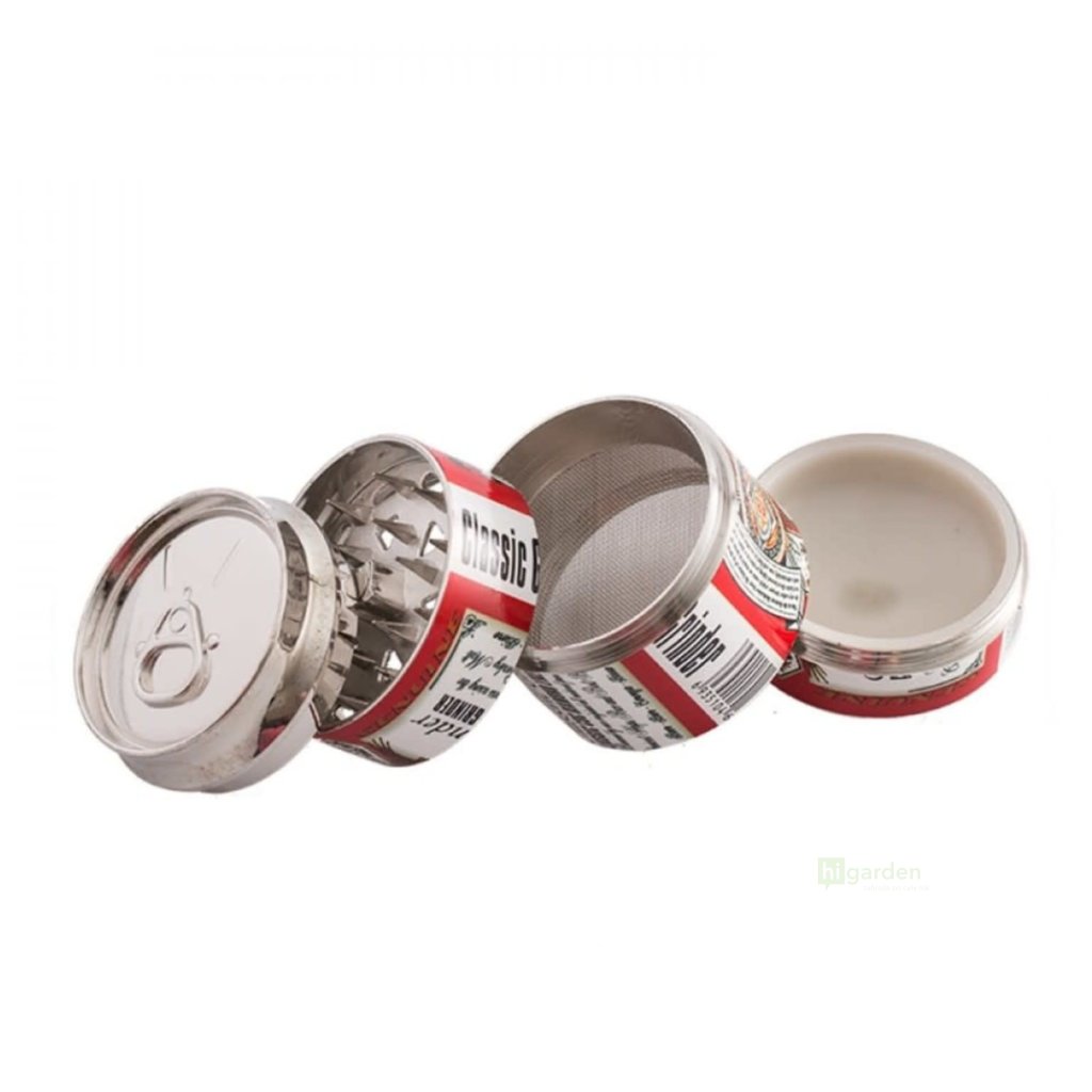 Vierstufiger Zerkleinerer in Dosenform mit einem Durchmesser von 50 mm Bier.