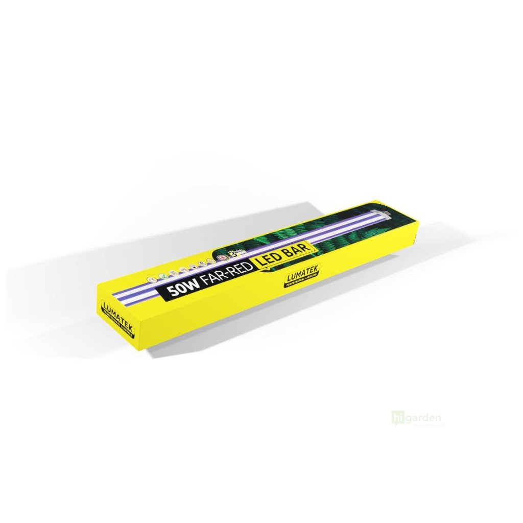 Die Lumatek LED Bar Far-Red 50W unterstützt die Verlängerung des Stängels und das Wachstum der Blätter während der Wachstumsphase und in den ersten Tagen der Blüte. So kann die Anbaufläche optimal genutzt werden. Aufgrund ihrer hohen Effizienz ist es auch ratsam, sie am Ende der Wachstumsperiode einzusetzen, um die Gesamteffizienz der Photosynthese zu verbessern.