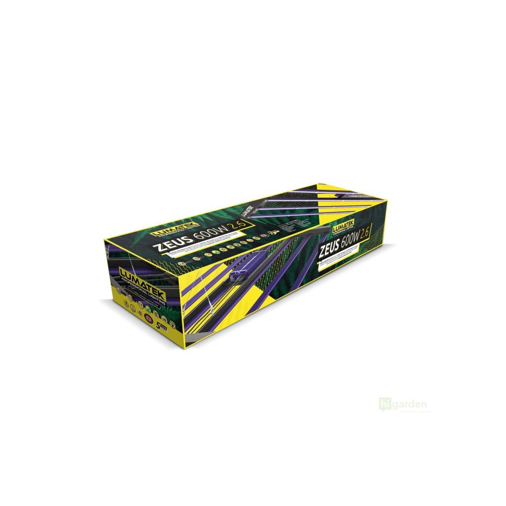 Bis zu 100 ZEUS 600W 2.6 Leuchten können extern über den Lumatek digitalen Lichtcontroller ( Digital Panel Plus 2. 0 ) mit Lichttiming, automatischer Dimmung (in 1er-Schritten) gesteuert werden %), Temperatursicherung und Sonnenaufgangs- und Sonnenuntergangsmodus.