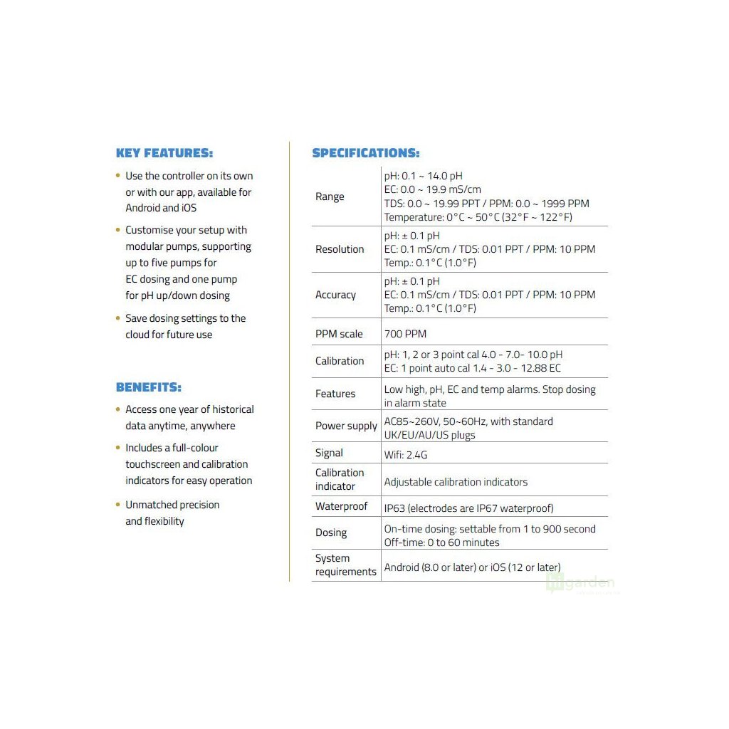 - Das fortschrittliche Überwachungssystem überwacht kontinuierlich pH-Wert, EC-Wert und Temperatur, um die ideale Umgebung für das Wachstum Ihrer Pflanzen zu gewährleisten