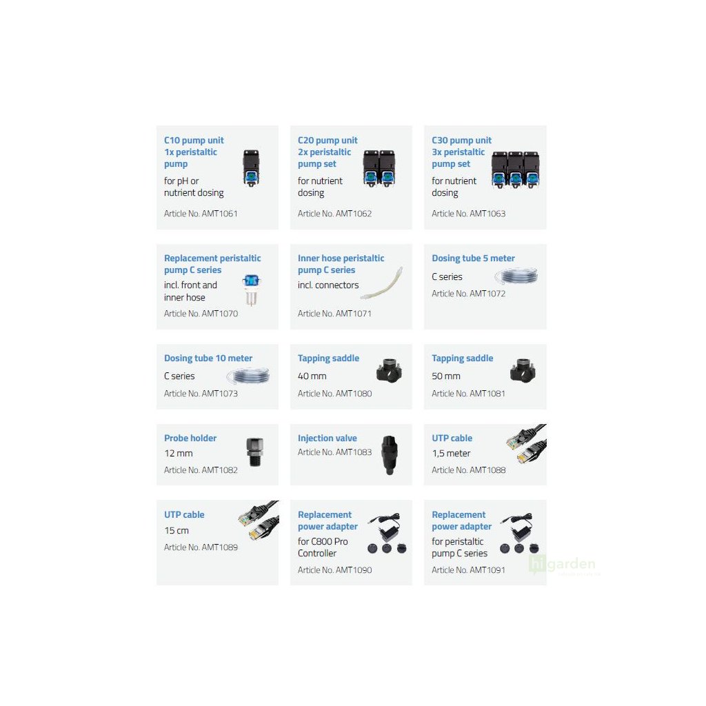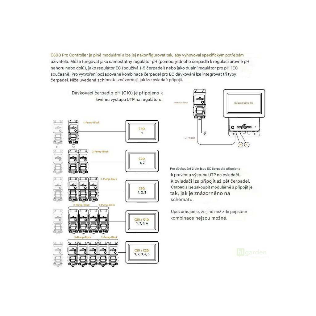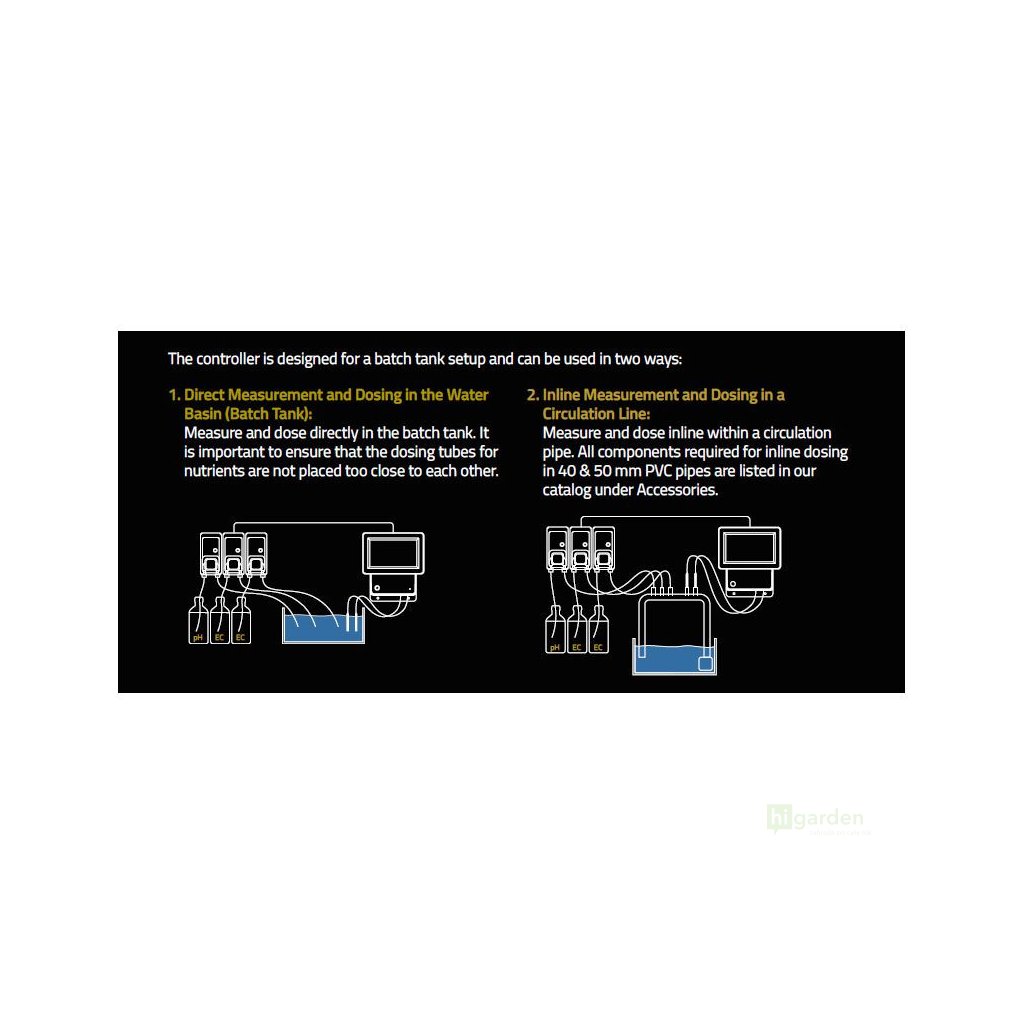 - Modulare Pumpen unterstützen bis zu fünf Pumpen für die EC-Regelung und eine Pumpe für die pH-Anpassung (aufwärts/abwärts), was Ihnen flexible Einrichtungsoptionen für Ihre spezifischen Anforderungen bietet