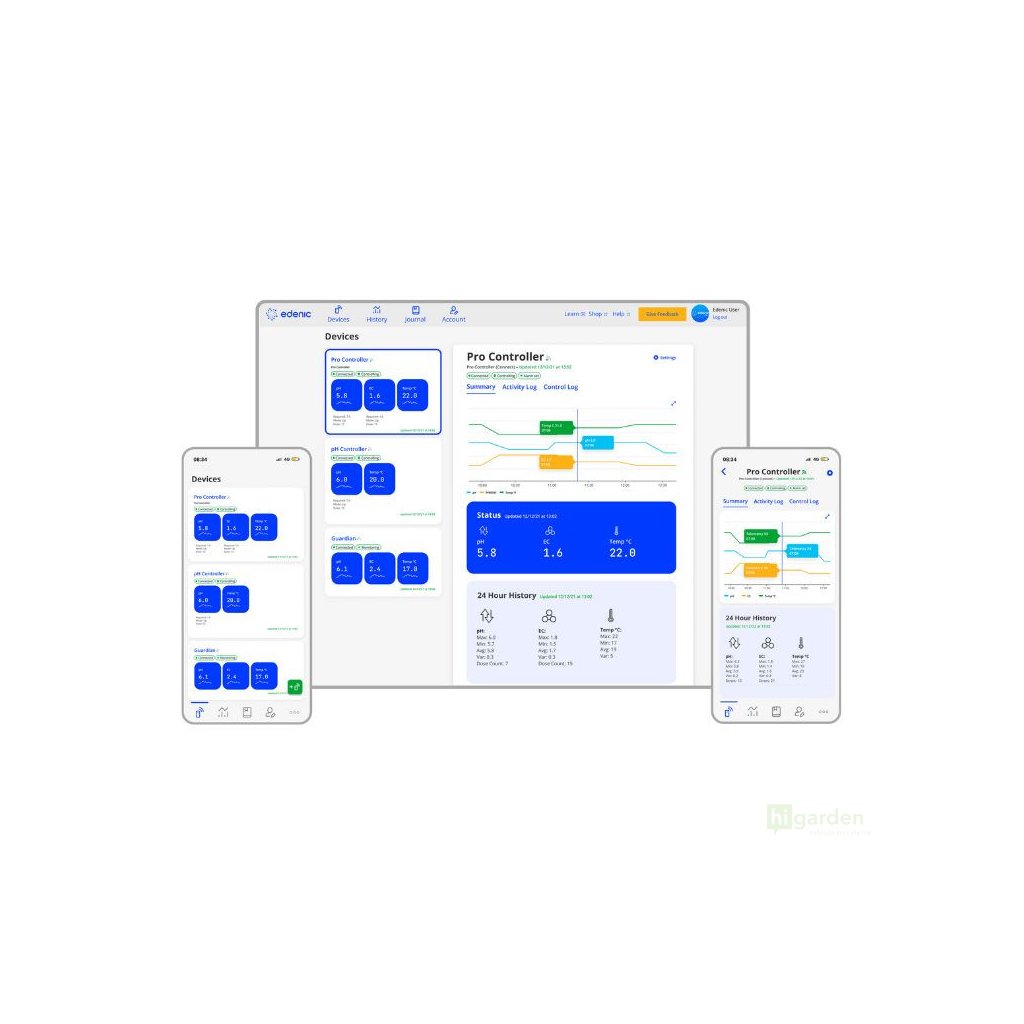 Der Bluelab pH Controller Wi-Fi beseitigt die Komplexität der pH-Kontrolle und macht die Messung der Genauigkeit einfacher denn je. Denn die eingebaute Peristaltikpumpe sorgt für eine präzise Steuerung und liefert Dosierungen innerhalb einer Toleranz von 0,1 pH. Die Pumpe ermöglicht außerdem eine variable Geschwindigkeit, um unabhängig von der Einstellung die richtige Menge an Lösung zu liefern. Dank der eingebauten Wi-Fi-Funktion kann der Bluelab pH Controller Wi-Fi, wenn er aktiviert ist, Daten in der Edenic-App (Online-Softwareplattform, siehe Edenic.io für weitere Informationen) anzeigen. So können die Landwirte den pH-Wert jederzeit und von jedem Ort aus überprüfen.