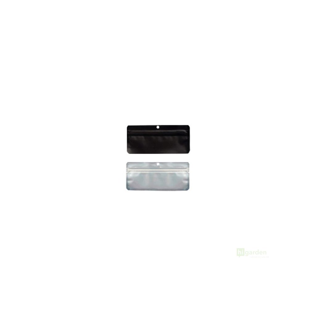 Geruchsneutraler Qnubu mit Reißverschluss. Schwarz auf einer Seite für individuellen Druck, transparent auf der anderen Seite. Größe 15x7cm. Auch für Aufbügelmaschinen geeignet. Die Packung enthält 50 Stück.