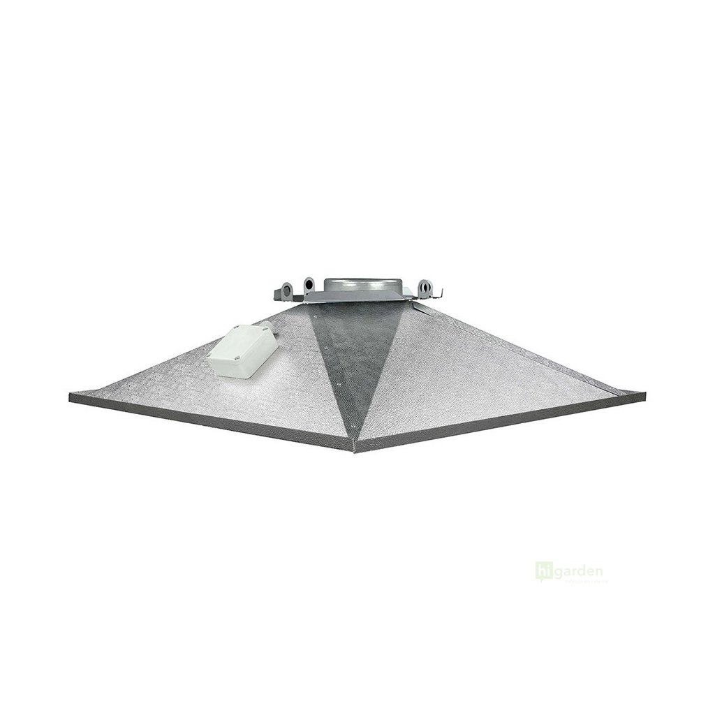 Sie verfügt über eine behandelte VEGA-PVD-Oberfläche und einen überdurchschnittlichen Reflexionsgrad von 95 %. Dieser stark geneigte Pyramidenschirm nimmt eine quadratische Fläche von 680x624 mm ein und ist 197 mm hoch. Dies gewährleistet eine stabile und gleichmäßige Lichtverteilung und eine maximale Lichtausbeute.