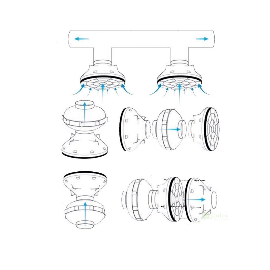 Kann auch an Ventilatoren mit höherem Luftdurchsatz angeschlossen werden, indem 1 oder 2 Kohlepatronen hinzugefügt werden.
