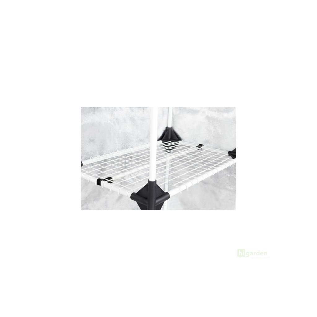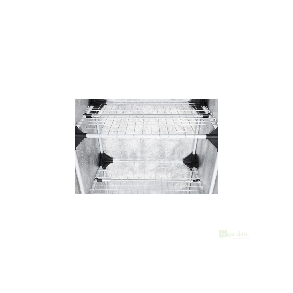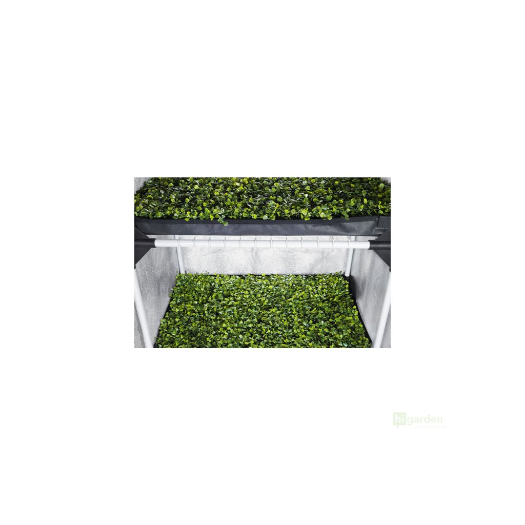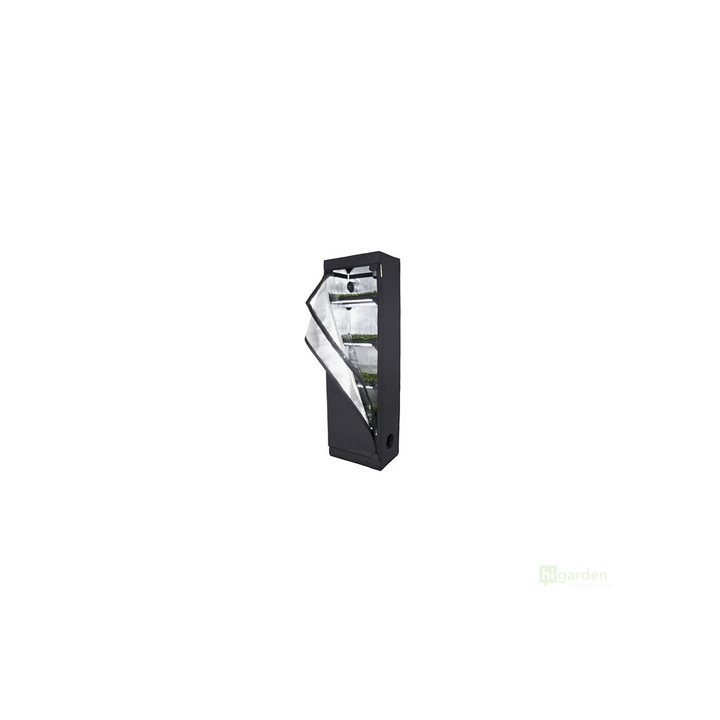 Probox Propagator L hat 5 Etagen in 2 Metern Höhe. Es ist mit einer stabilen Konstruktion ausgestattet. Die Außenhülle besteht aus strapazierfähigem und starkem Nylon 420D. Die reflektierende Mylar-Innenfolie bietet einen Reflexionsgrad von bis zu 97 %. Der gesamte Projektträger ist in geschlossenem Zustand undurchsichtig. Reißverschlüsse sorgen dafür, dass das Zelt absolut lichtdicht ist. Die Vordertür ermöglicht den Zugang zur Inspektion.