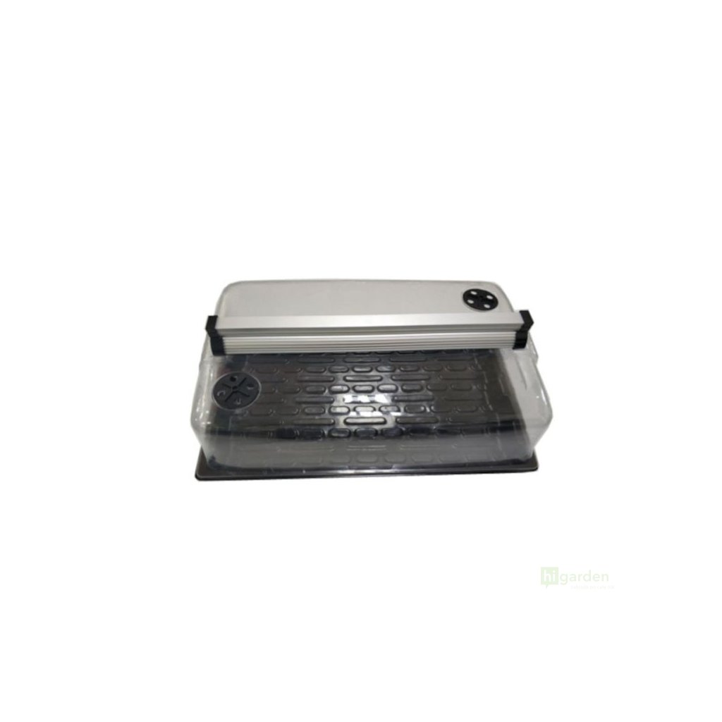 Der Propagator besteht aus einem schwarzen Boden und einem transparenten Deckel. Der Deckel des Kunststoffpromoters hat ein Paar Lüftungsklappen und ist für LED-Beleuchtung mit geeigneten Abmessungen und geringer Wärmeabgabe geeignet. Die Klappen tragen dazu bei, ein perfektes Mikroklima im Gewächshaus zu gewährleisten.