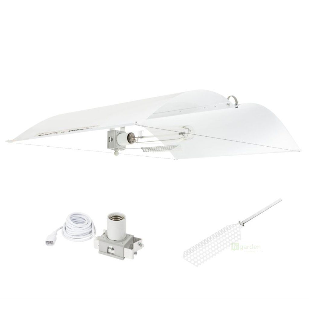 Adjust a Wing Defender Medium ist ein hochwertiger Farbton, der dem Enforcer-Modell ähnelt. Diese Art von Visier besteht aus einer H18-Aluminiumlegierung mit 3% Magnesiumzusatz, die besonders stabil und flexibel ist und ihre perfekten parabolischen Kurven auch bei grober Handhabung während des Auf- und Abbaus oder des Umzugs beibehält. Die Oberfläche der Defender heißt "Titanweiß", es handelt sich um eine hitzebeständige Pulverbeschichtung, die einen sehr diffusen und gleichmäßig verlaufenden Lichtstreifen erzeugt. Adjust a Wings Defenger Medium ist für 400W und 600W Lampen geeignet.