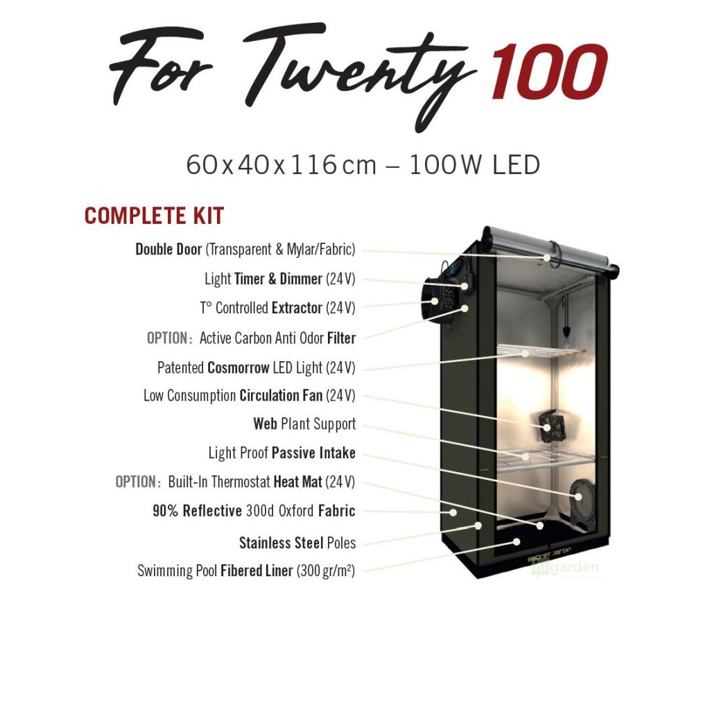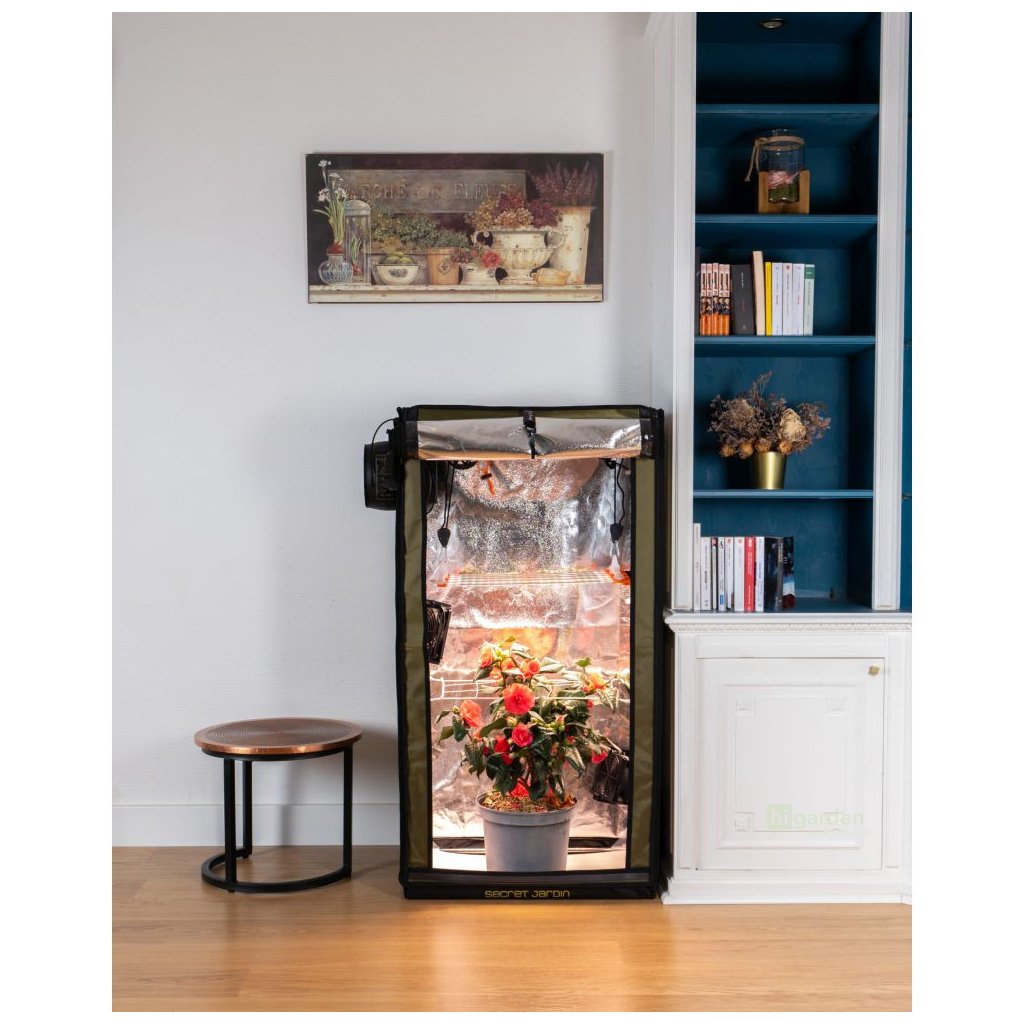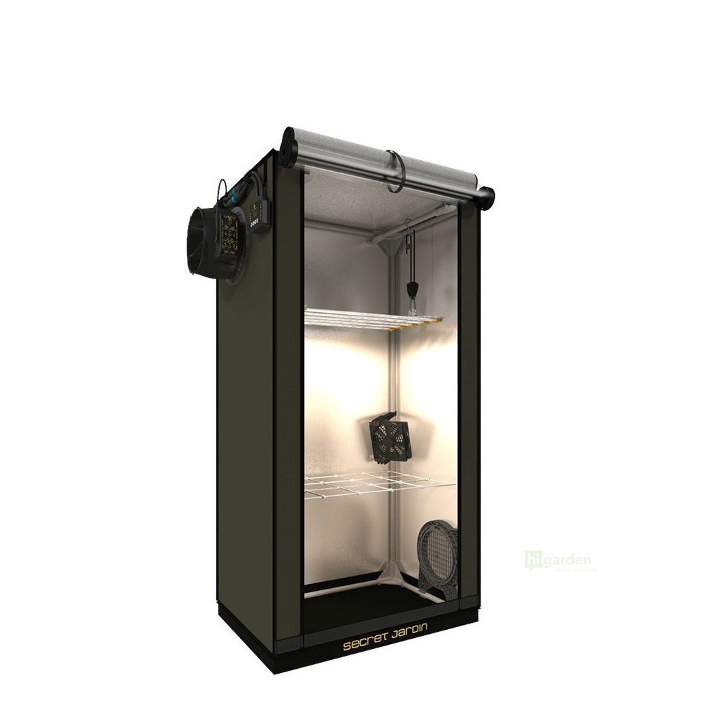 Das kleine Komplettzelt Secret Jardin FS100 For Twenty 60x40x116 cm ist ein Set, das die gesamte für den Indoor-Anbau benötigte Ausrüstung enthält: Zelt, Vollspektrum-LED-Beleuchtung, Belüftungssystem, Umluftventilator und vieles mehr. Das Set ist für die gesamte Wachstumsperiode geeignet.