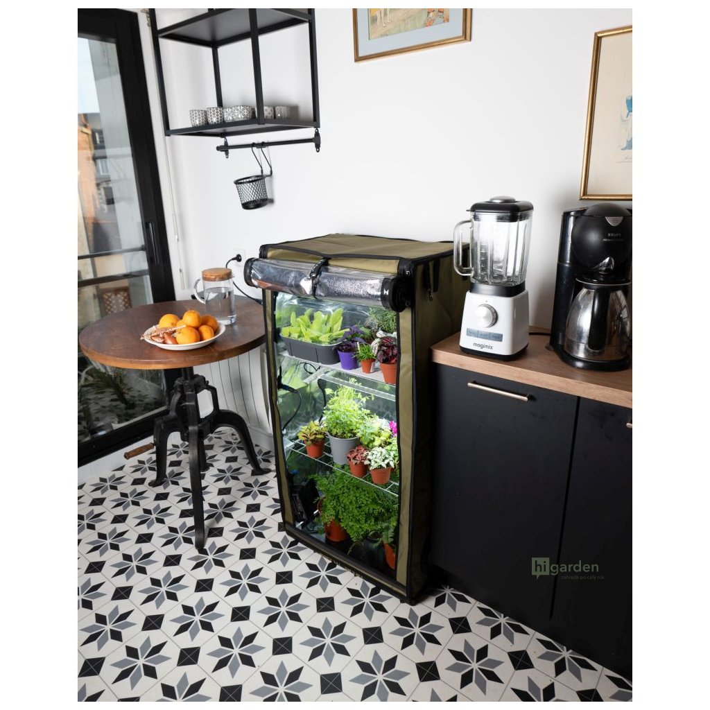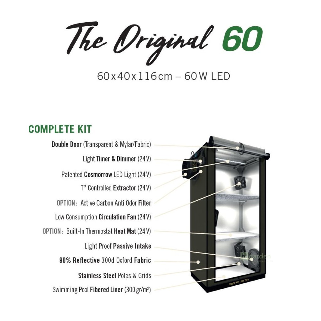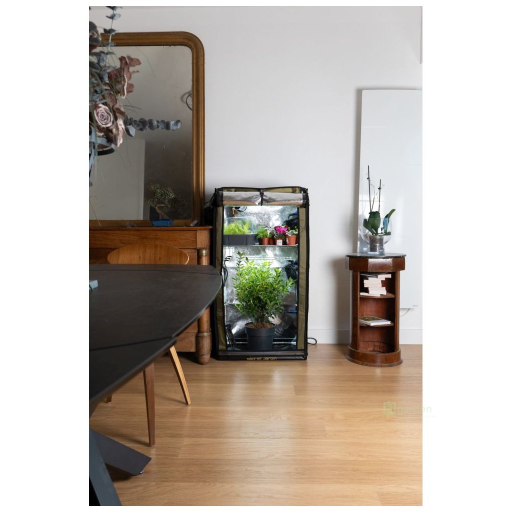 Kleines Komplettzelt Secret Jardin FS100 für Twenty 60x40x116 cm ist ein Set, das die gesamte benötigte Ausrüstung enthält drinnen Anbau: Zelt, EIS vollspektrum-Beleuchtung, Lüftungsanlage, Umluftventilator und vieles mehr. Das Set ist für die gesamte Wachstumsperiode geeignet.