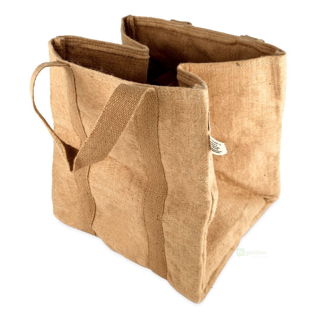 Das biologisch abbaubare quadratische Pflanzgefäß mit Griffen wird aus Jutefasern hergestellt. Der UGro Jute Single Season Eco Growing Container wurde entwickelt, um die Umweltverschmutzung durch Kunststofftöpfe zu reduzieren.
