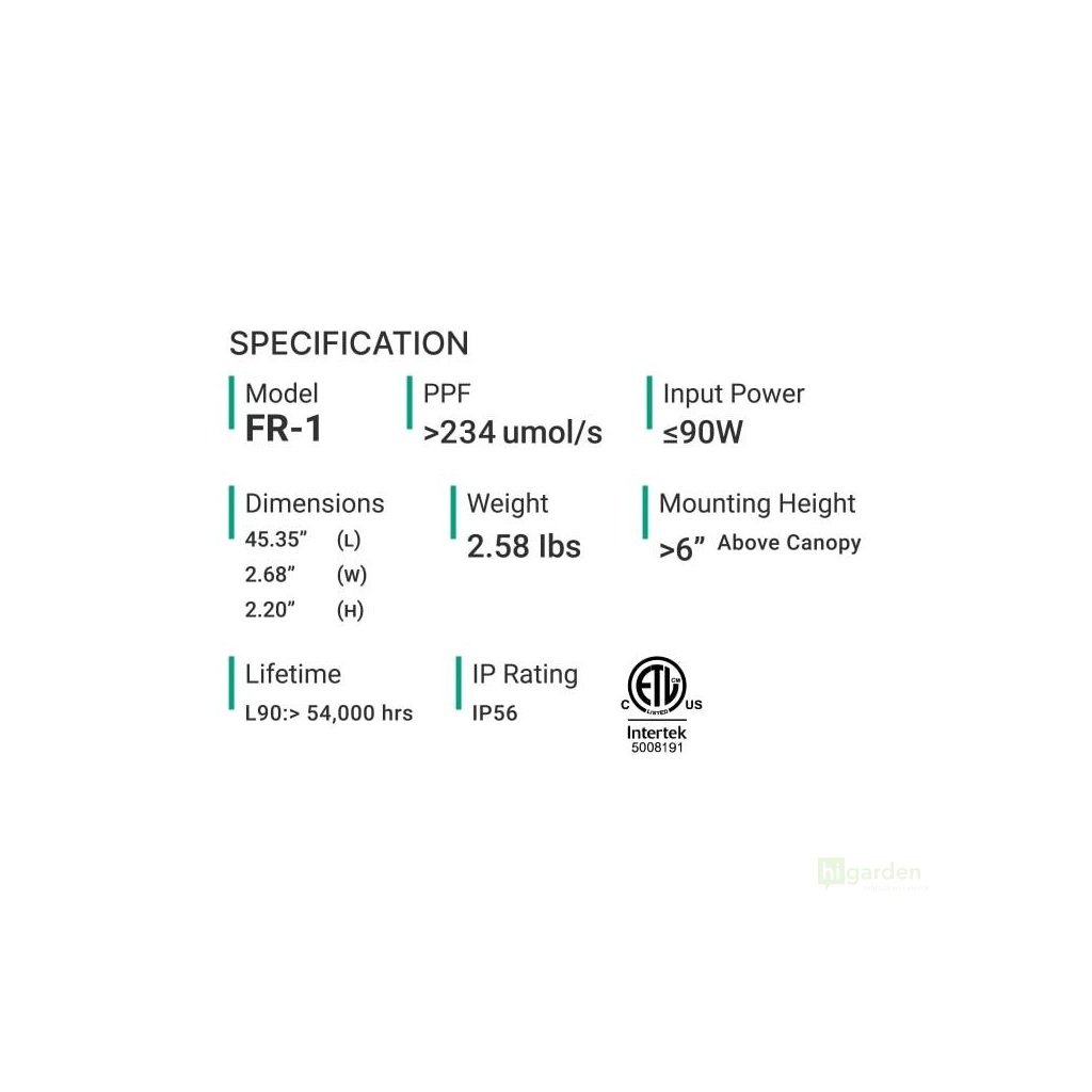 Die 4' LED-Leiste mit 2x Spektralkanälen (Vollspektrum + Fernrot) für das Thinkgrow Model One LED-System, FR-1, ist eine Standard 4' LED-Lichtleiste, die zwei Spektralkanäle enthält, Vollspektrum und Fernrot.