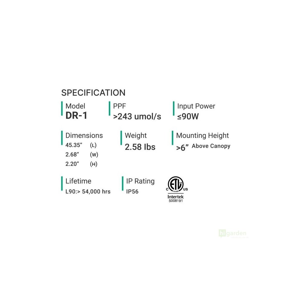Der 4' LED-Balken mit 2x Spektralkanälen (Vollspektrum + Tiefrot) für Thinkgrow Model One, DR-1, ist ein Standard 4' LED-Lichtbalken, der über Vollspektrum- und Tiefrotkanäle verfügt.