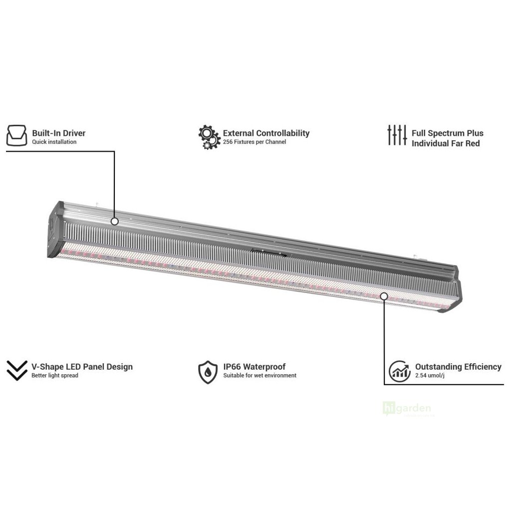 Er bietet hervorragende externe Steuerungsmöglichkeiten und ermöglicht bis zu 256 Leuchten pro Kanal mit einer hervorragenden Effizienz von 2,54 μmol/J.