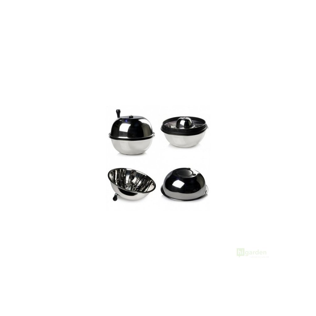 Tumble Trimmer, ein praktischer handgeführter Trimmer für Biomasse. Der Tumble Trimmer entfernt alle überschüssigen Blätter fast geräuschlos und vor allem ohne Strom. Die frischen Knospen werden abgeschnitten (3-5 cm) und auf ein abnehmbares Gitter gelegt, unter dem sich eine Stahlklinge mit einer doppelseitigen Klinge (oder eine Stahlschnur) befindet, die nach einer 360-Grad-Drehung schnell vibriert und die Blätter abschneidet, die unter dem Gitter hervorstehen.