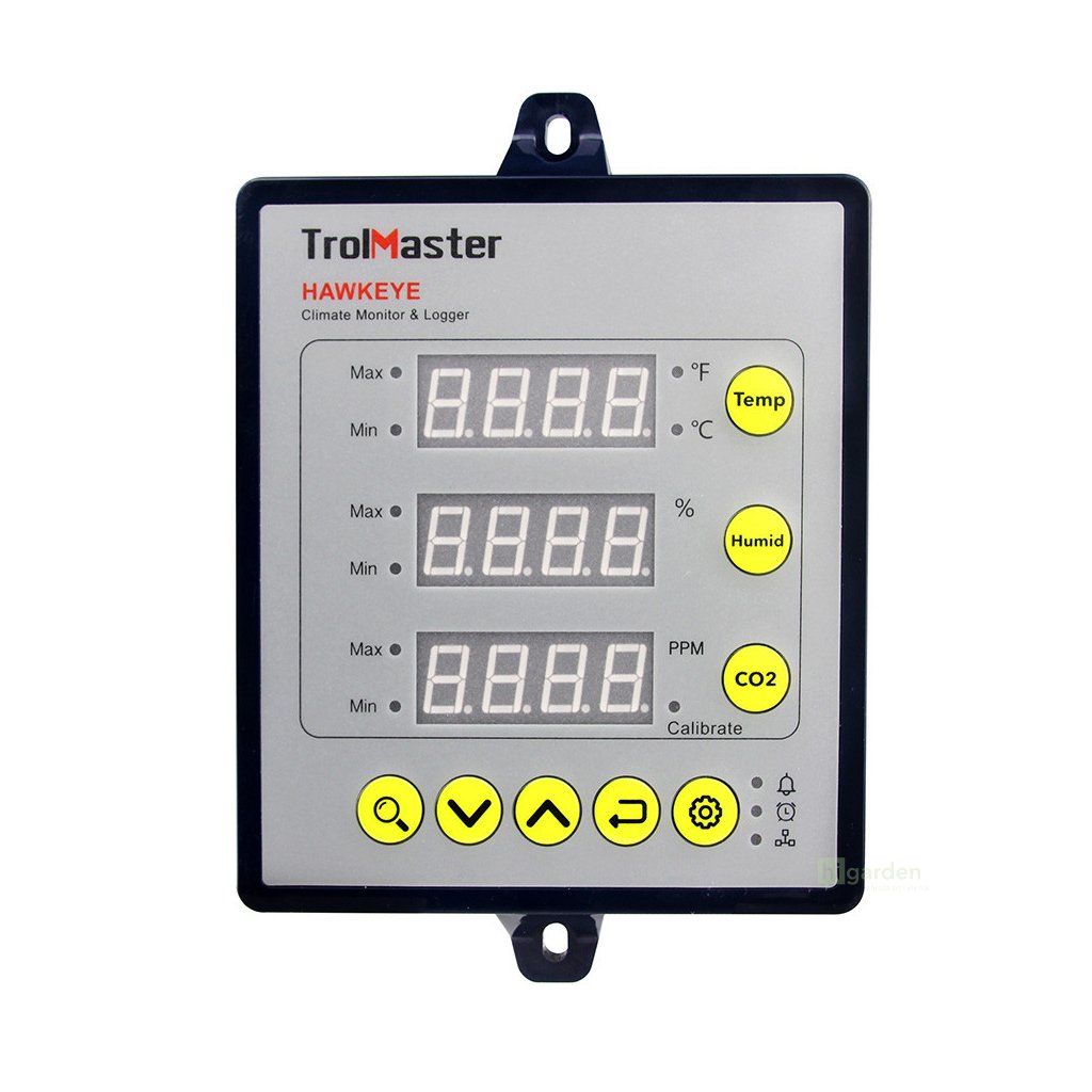Hawkeye von TrolMaster ist eine wirtschaftliche und genaue Methode zur Überwachung enger Räume. Manche Benutzer müssen einfach nur Temperatur, Luftfeuchtigkeit, CO2 und VPD überwachen, ohne irgendwelche Geräte zu bedienen. Das CM-1/Hawkeye-System ist speziell für den Einsatz als Backup-Überwachungssystem konzipiert, um sicherzustellen, dass die Umgebungsbedingungen innerhalb akzeptabler Grenzen bleiben.