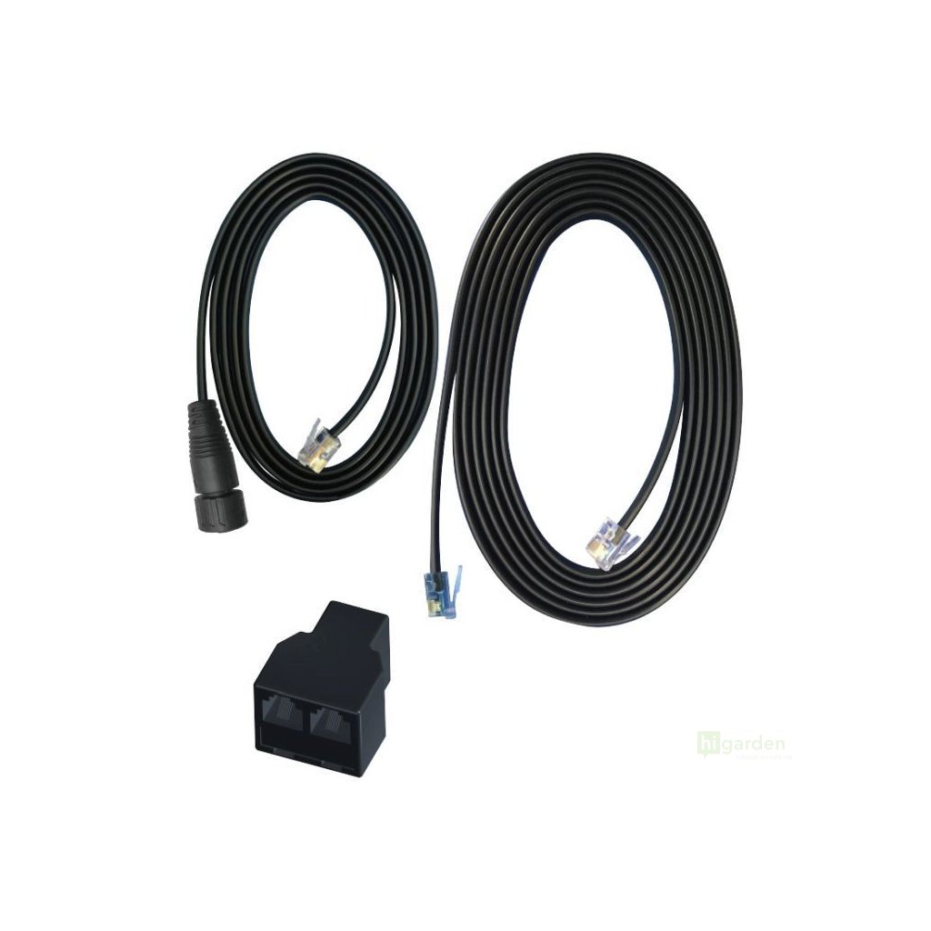 Der ECS-5 bietet einen 5/8"-Durchmesser-Anschluss für einige der neueren LED-Leuchten von Fluence, die wasserdichte PushLock-Anschlüsse für die Verbindung verwenden. Wie andere ECS-Kits wird auch das ECS-5 mit einem 16-Fuß-RJ12-Kabel, einem T-Hub und einem speziellen 4-Fuß-RJ12-Kabel mit wasserdichtem PushLock-Anschluss geliefert.