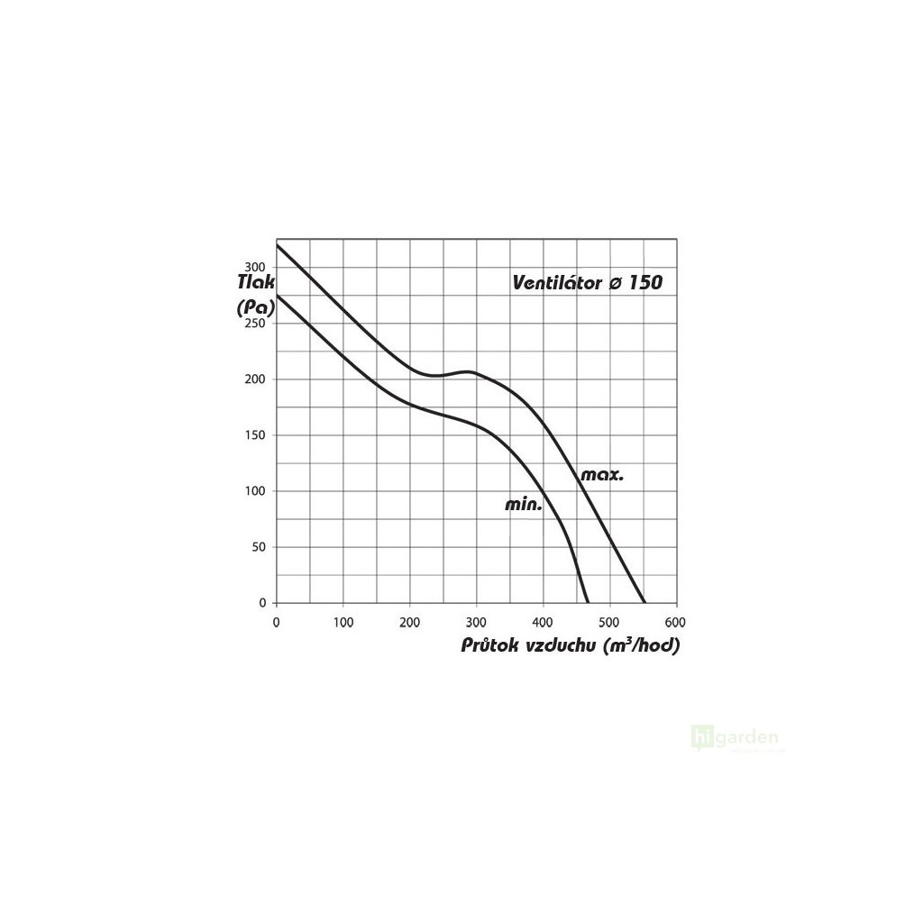 ANWENDUNGEN: Der Kunststoffventilator TT 150 hat eine maximale Leistung von 467/552m3/h und ist für Lüftungskanäle mit einem Durchmesser von 150 mm ausgelegt. TT-Ventilatoren erreichen einen hohen Luftdurchsatz bei niedrigem Geräuschpegel. Sie sind außerdem mit einem kugelgelagerten Motor mit zwei Geschwindigkeiten ausgestattet, der einen Dauerbetrieb ermöglicht. Der Ventilator findet seine Anwendung in Bereichen mit hoher Luftfeuchtigkeit wie Toiletten, Küchen, Büros, Gewächshäusern, Anbauräumen usw. Dank seiner technischen Parameter ist er für die Entnahme in Rohrleitungen bis zu 29 Metern geeignet.